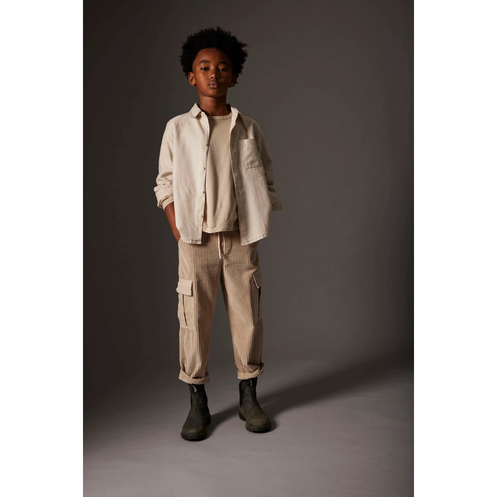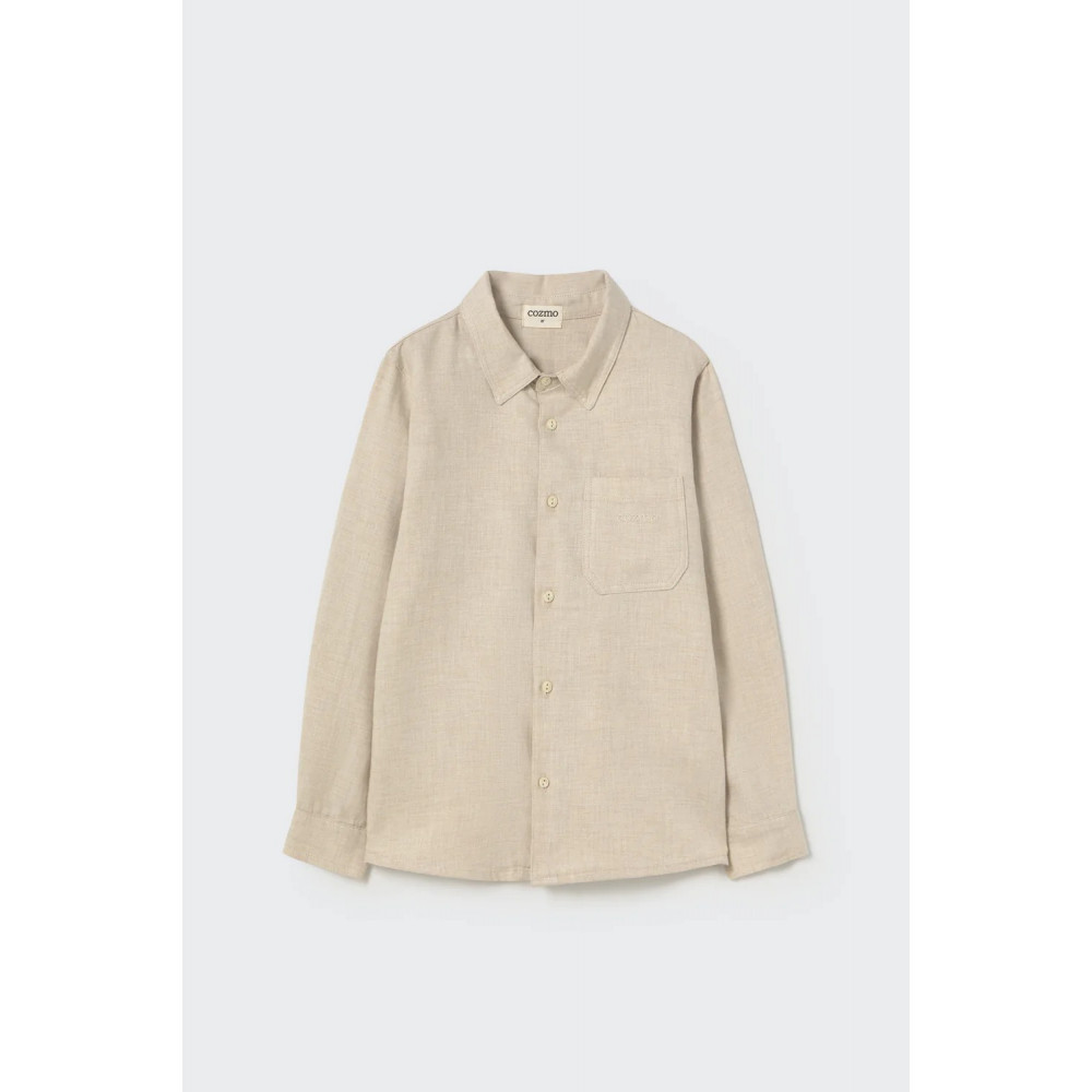 This boys’ shirt is made from cotton flannel with a mélange effect, crafted from 100% sustainable cotton. It features a classic collar, a button-down front placket, and a chest patch pocket embroidered with the “Cozmo” logo. Made from cotton certified by the Better Cotton Initiative. Offers a unique, handcrafted look. A sustainable choice for your boy’s wardrobe.
