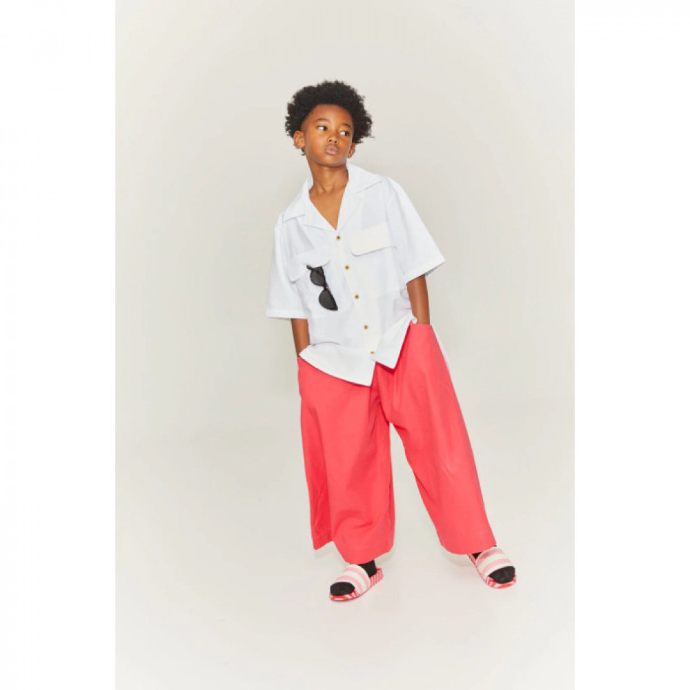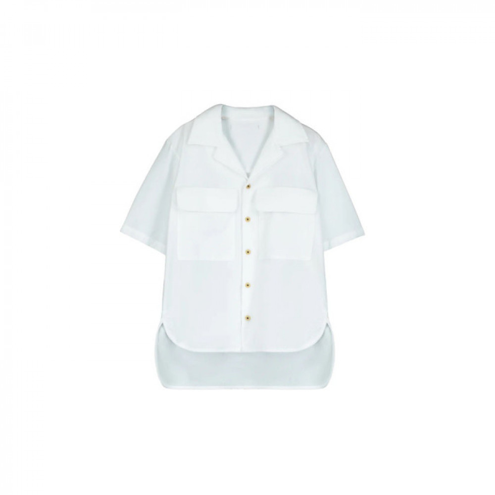 A piece made from soft cotton with a classic style, this essential garment in pristine white is a staple for any wardrobe. Details include short sleeves, pointed collar, button up front closure and pockets with flaps. Features an asymmetric hem, longer on the back. This shirt is comfortable and easy to wear.