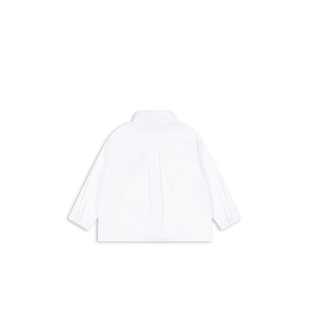 Crisp white shirt with a regular collar, slim button cuffs, and signature lemon print on the chest. Designed with mother of pearl buttons in front.