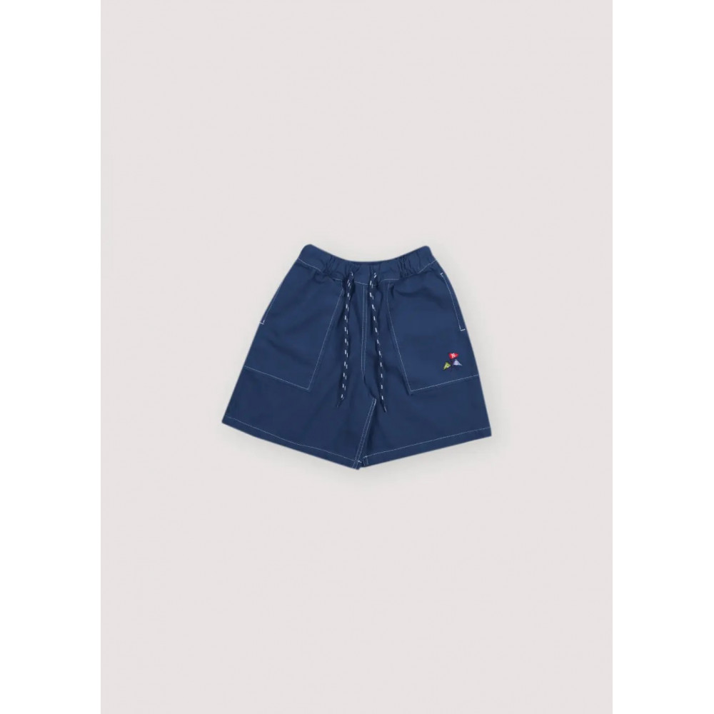 Cool Bermuda shorts made from lightweight denim fabric with a stylish adjustable waistband, large patch pockets with embroidered logo, contrasting stitching.