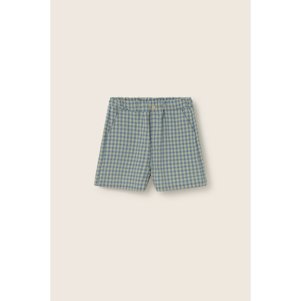 Soft cotton Bermuda shorts in a fresh and lively gingham check pattern. Elastic adjustable waistband and decorative button at front. Side pockets and patch pockets at the back.