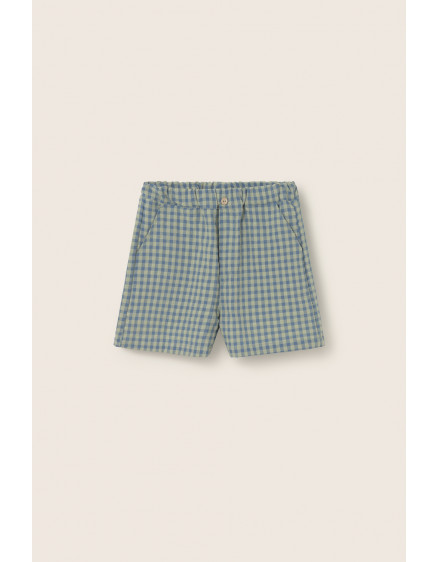 Soft cotton Bermuda shorts in a fresh and lively gingham check pattern. Elastic adjustable waistband and decorative button at front. Side pockets and patch pockets at the back.