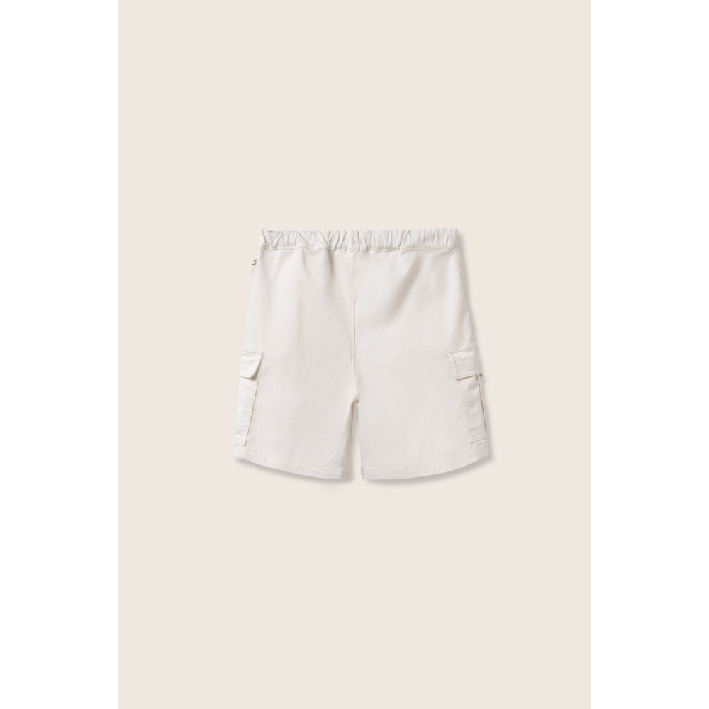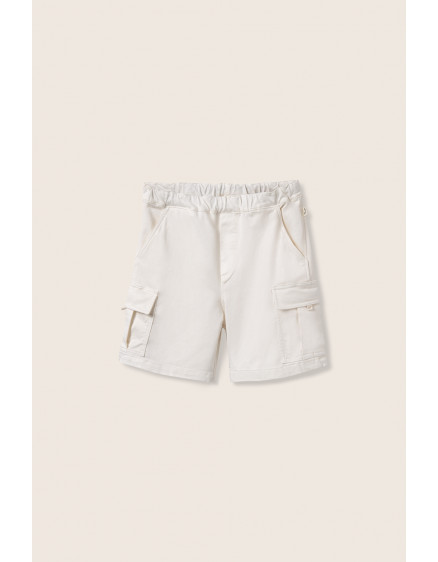 Bermuda shorts in comfy and elastic cotton twill. Elastic adjustable waistband. Mock fly. Side pockets and cargo pockets on the legs.