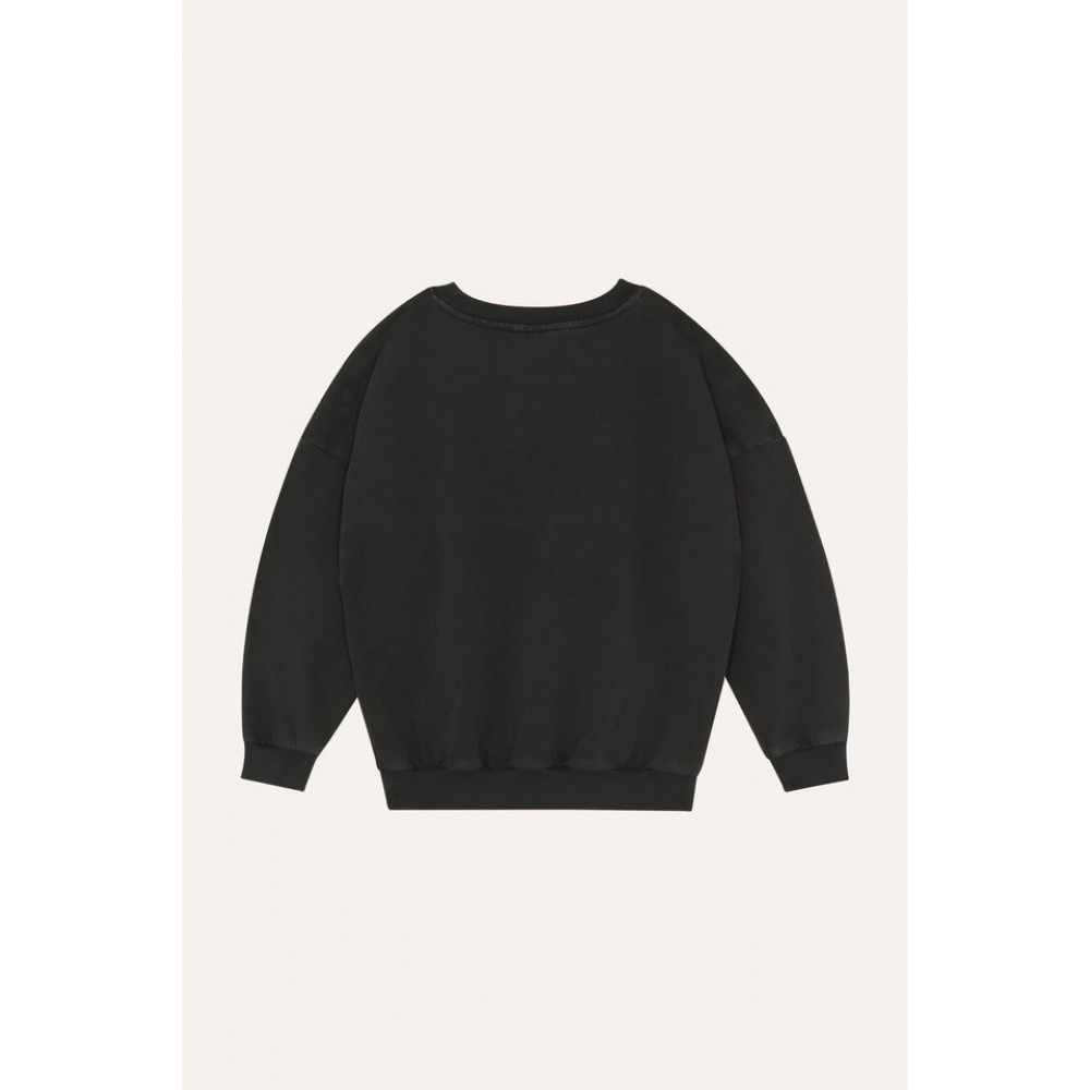 Retro vibes in this black washed sweatshirt with bands and patch on chest. With oversized fit and rib in cuffs and neck for more comfort it is perfect for winter outfits. Long sleeves and oversized fit. Rounded neck in rib quality for more comfort. Made in Portugal.