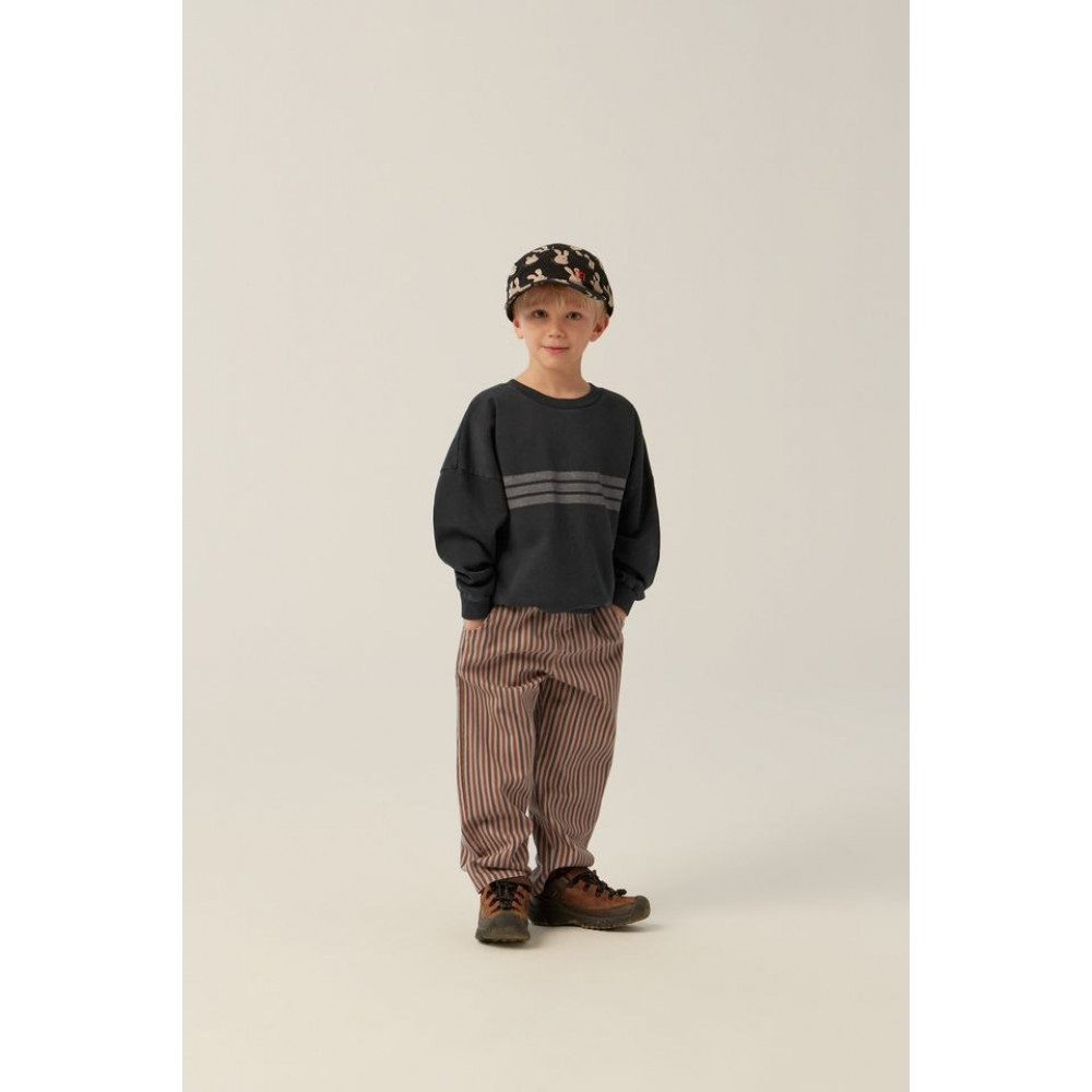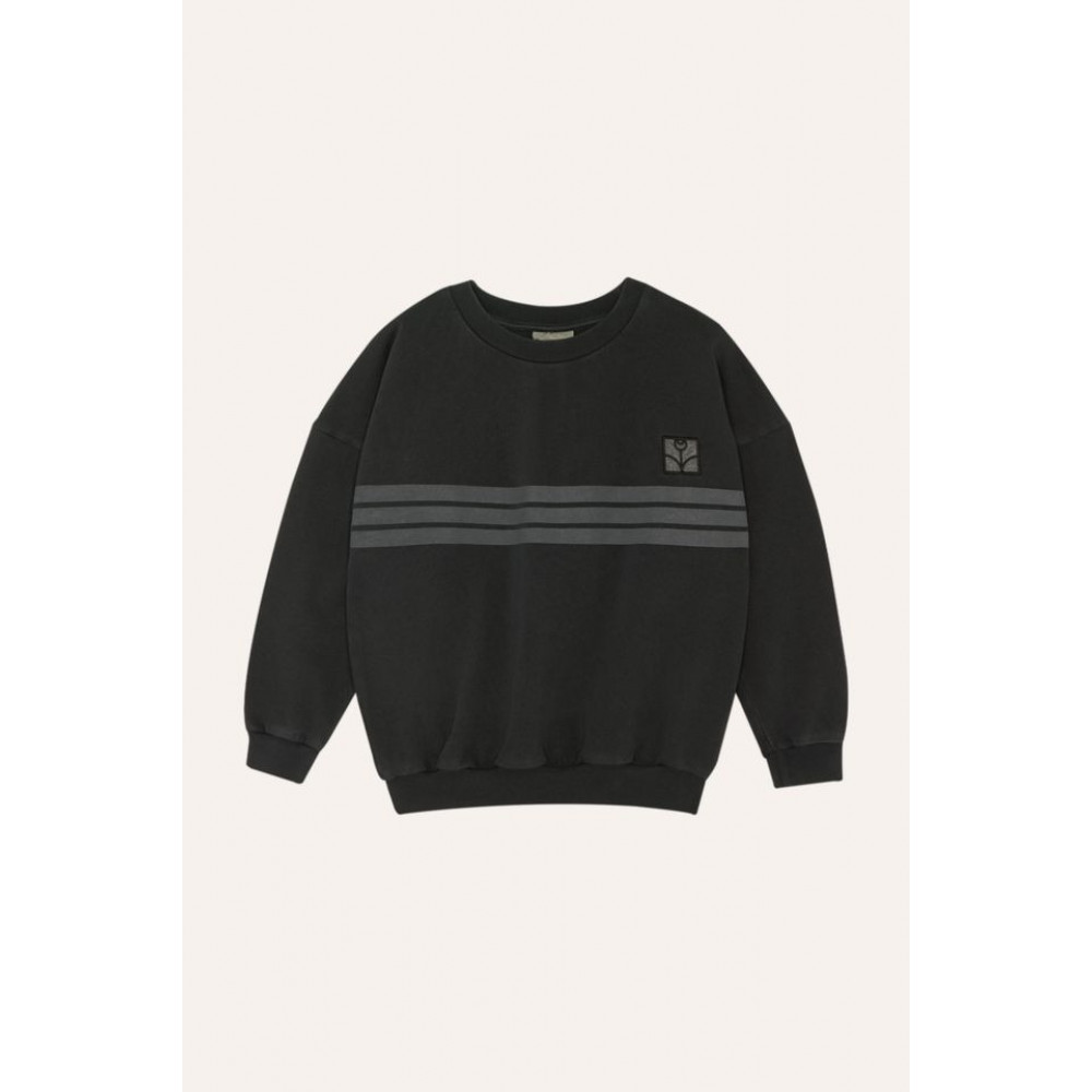 Retro vibes in this black washed sweatshirt with bands and patch on chest. With oversized fit and rib in cuffs and neck for more comfort it is perfect for winter outfits. Long sleeves and oversized fit. Rounded neck in rib quality for more comfort. Made in Portugal.