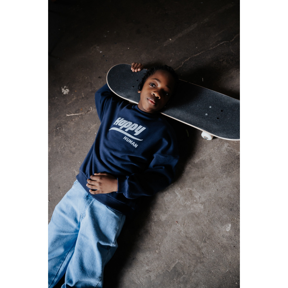 Let your little one wear joy on their sleeve—literally! This cozy kids crewneck features the uplifting phrase "happy human" in a playful new font, designed to inspire kindness and confidence. The maritime colourway, makes it a stylish staple for everyday adventures. Made from soft, durable fabric perfect for play, snuggles, and everything in between. Our besteller print since 2016, in a new graphic!