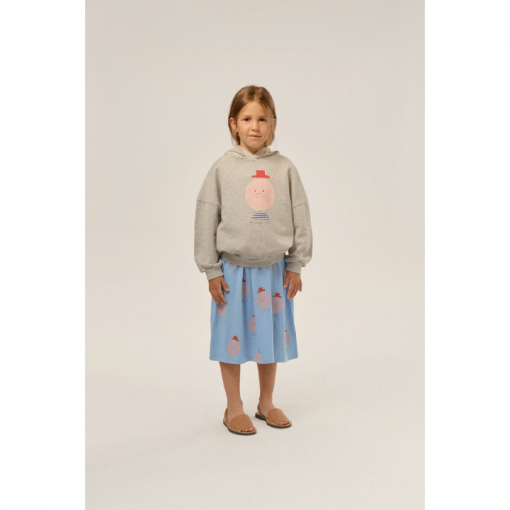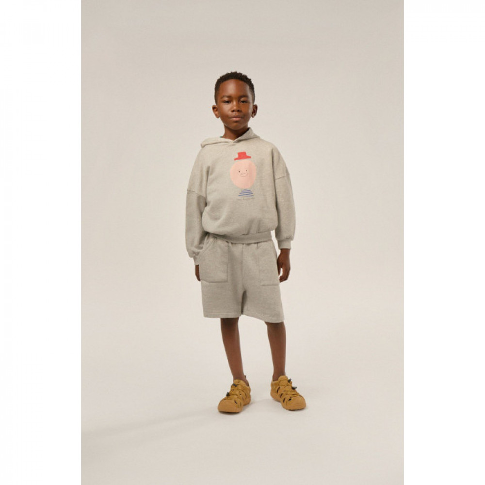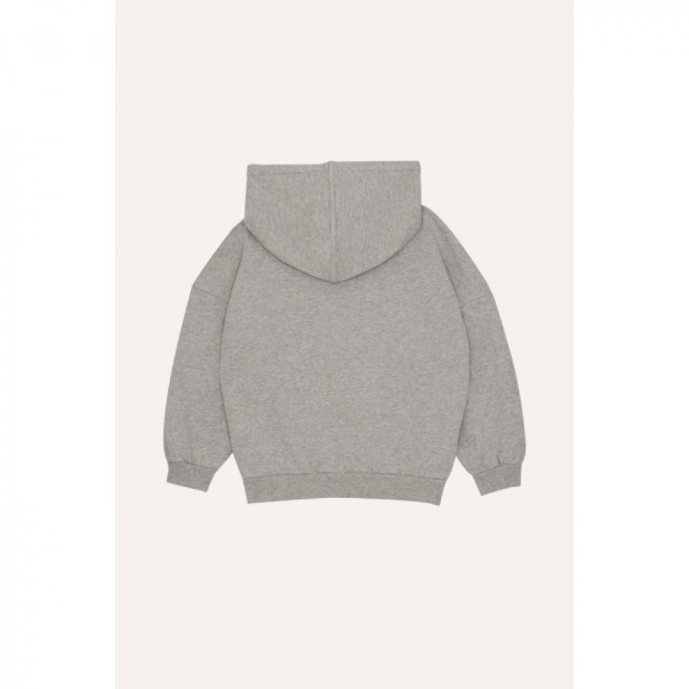Long sleeves with elastic cuffs in the rib and along the waistline. A little undersized. It has a soft hood.