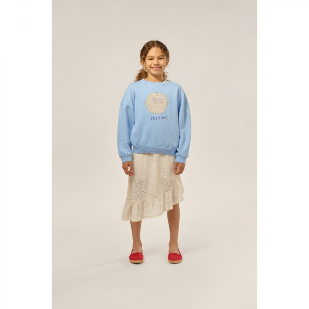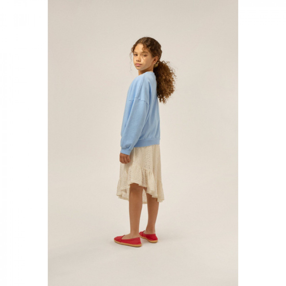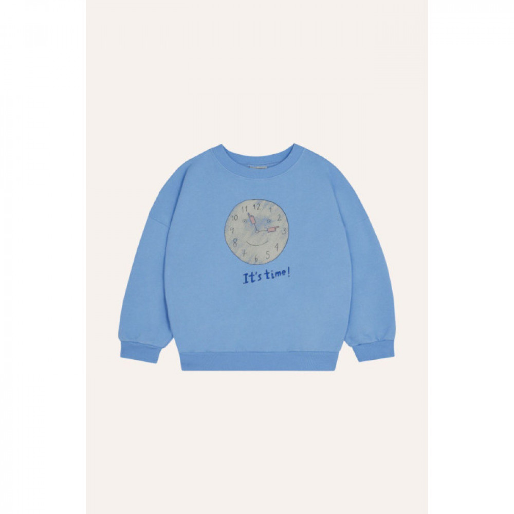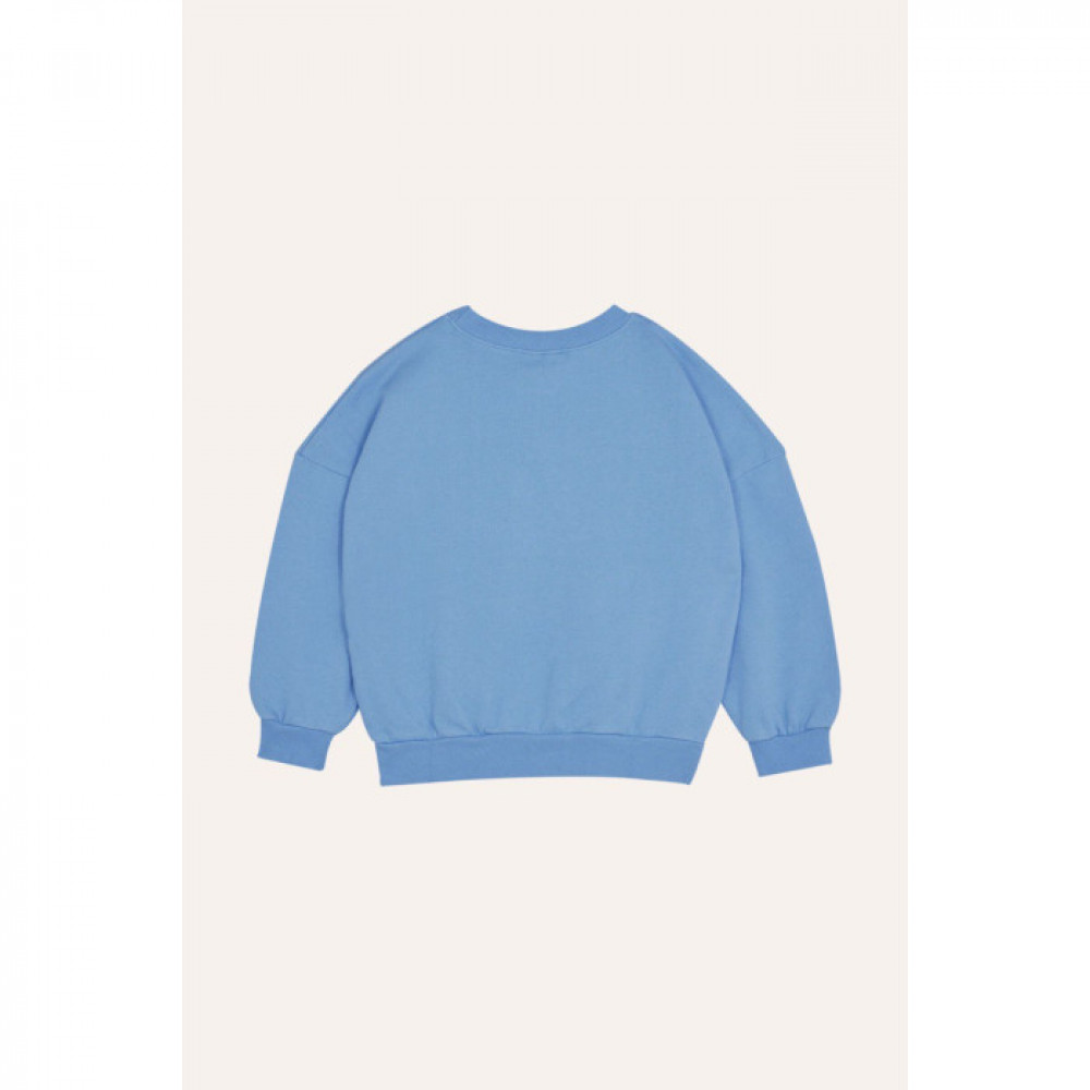 Round neck, long sleeves with elasticated rib cuffs and waistline. A little undersized.