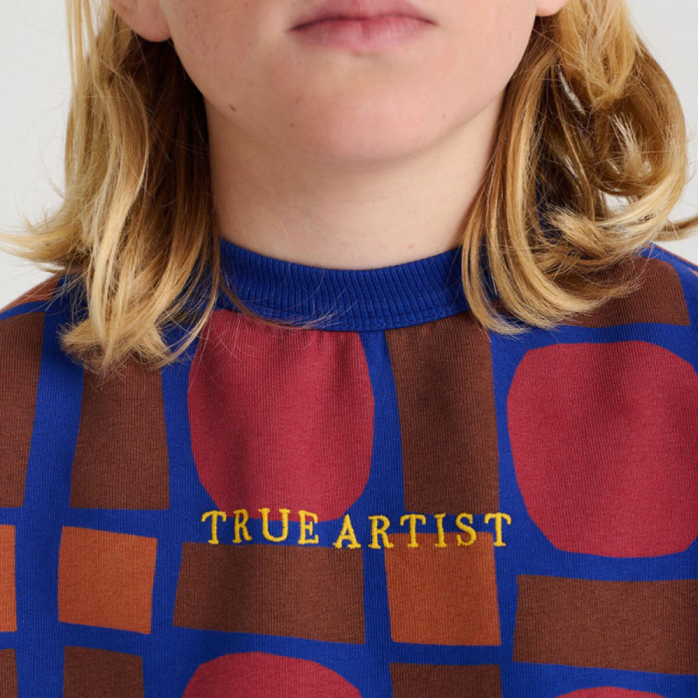 Costume nº01 is made of 100% cotton fleece and has our logo printed on the front. It is designed with ranglan sleeves, ribbed at cuffs and bottom, and has our bird logo embroidered on the sleeve. It has a loose fit. Made in Portugal.