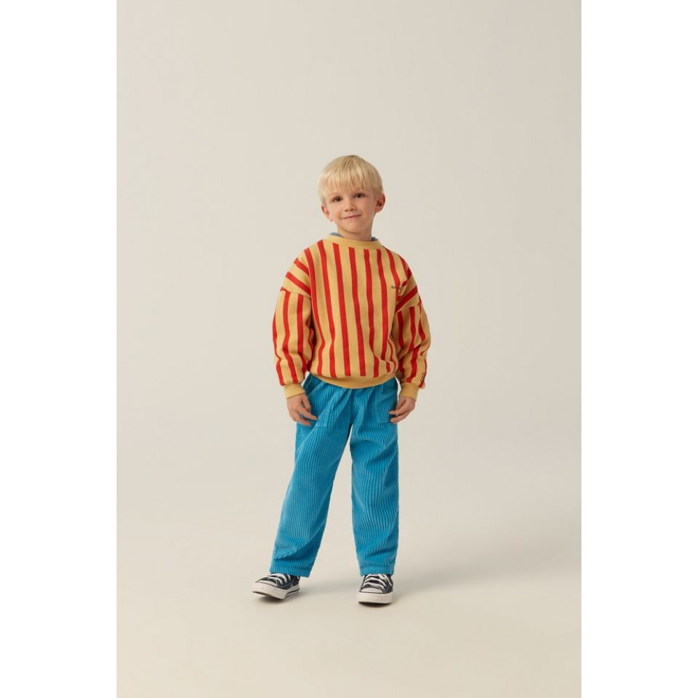 The “Red Stripes Sweatshirt” gives a touch of color to your winter wardrobe. Made in a soft and warm cotton fleece quality it brings comfort and coolness for any ocassion. Long sleeves and oversized fit. Rounded neck in rib quality for more comfort.