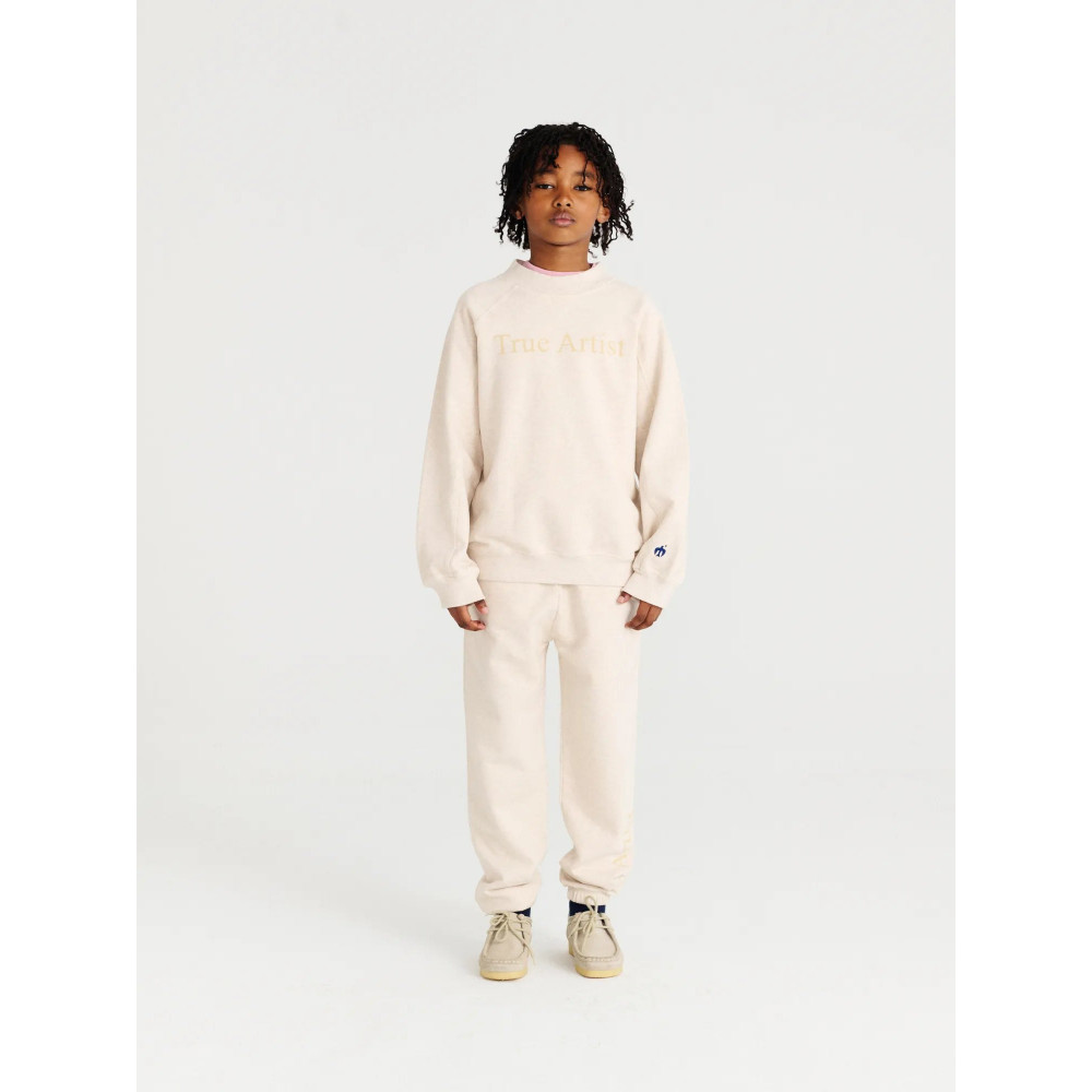 Sweatshirt nº01 in Melange Cream is made of 100% cotton fleece and has our logo printed on the front. It is designed with ranglan sleeves, ribbed at cuffs and bottom, and has our bird logo embroidered on the sleeve. It has a loose fit. Made in Portugal. Sweatpants nº05 in Melange Cream are made of 100% organic cotton and 2% elastan fleece and have our logo printed on the leg. These iconic sweatpants are designed with elastic adjustable waistband, relaxed crotch and slash pockets. They have a relaxed fit. Made in Portugal.