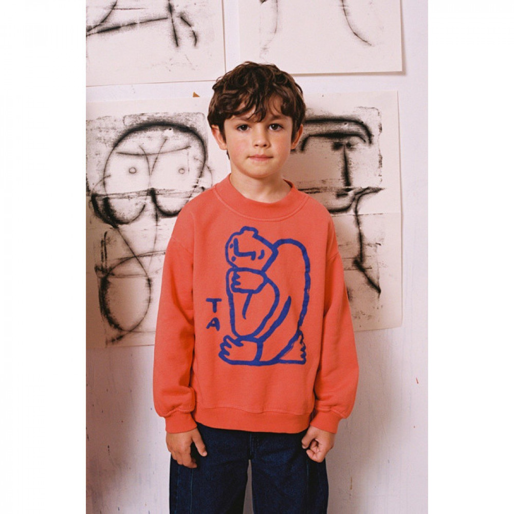 Sweatshirt is made of 98% organic cotton and 2% elastane fleece. It features our seasonal print on the front and it is designed with round ribbed neck, dropped shoulders, and rib at cuffs and bottom. It has a loose fit. Made in Spain.