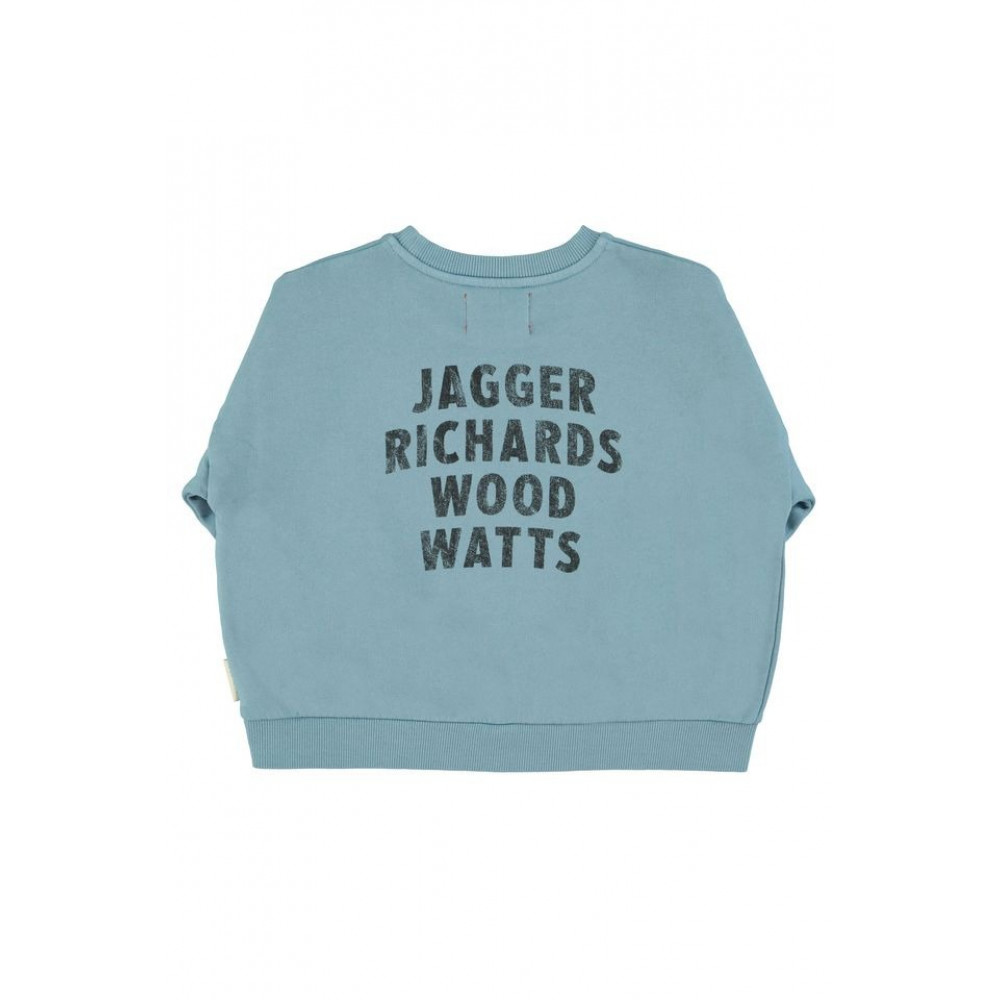 Unisex sweatshirt with frontal and back prints. Carded organic cotton fleece. Ribbed cufs. Baby sizes have buttons on the shoulders. Made in Portugal