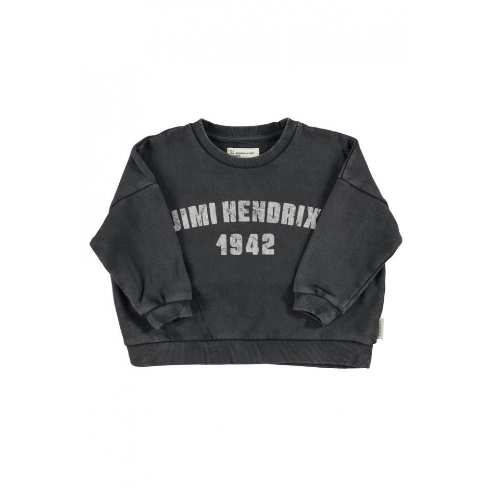 Unisex sweatshirt with frontal print and a little white star at back. Seam details. Carded organic cotton fleece. Ribbed cufs. Baby sizes have buttons on the shoulders. Made in Portugal