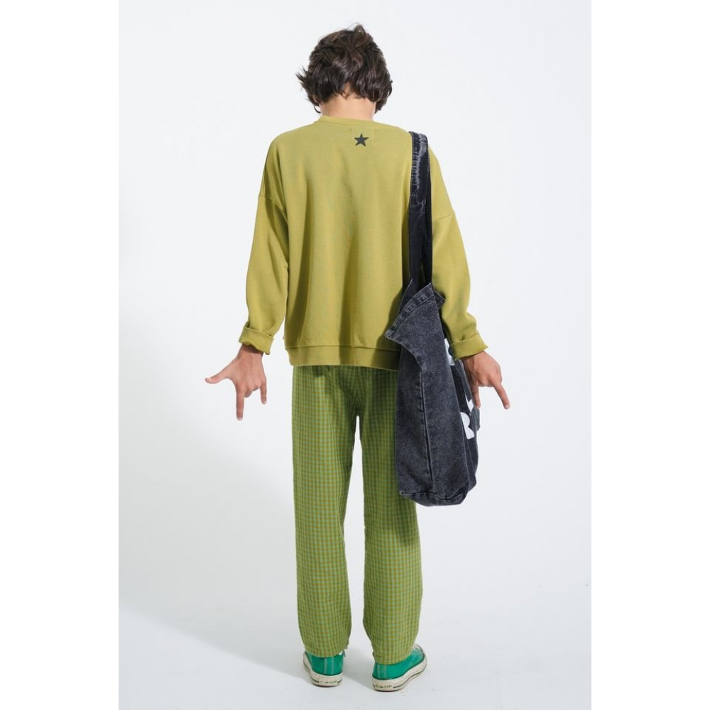 Unisex sweatshirt with frontal print and a little black star at back. Carded organic cotton fleece. Ribbed cufs. Baby sizes have buttons on the shoulders. Made in Portugal