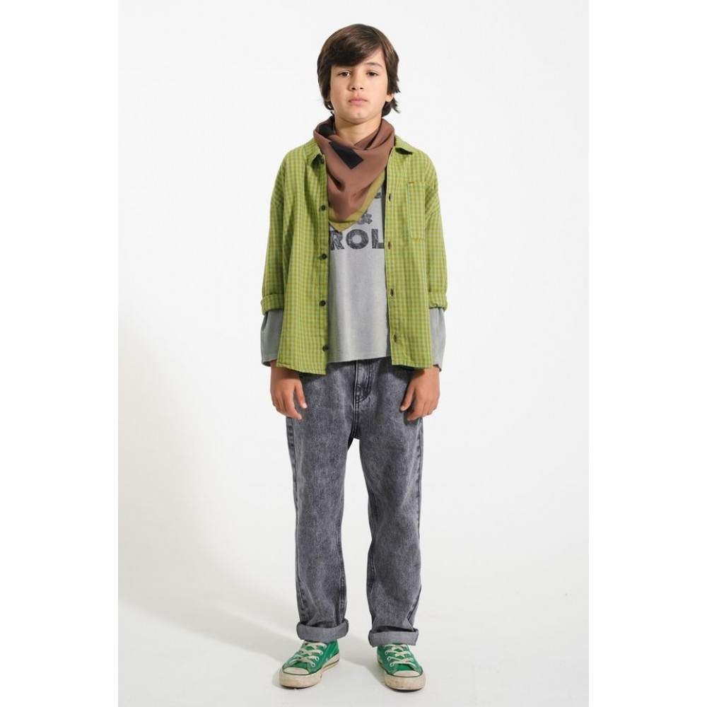 Long sleeve in terry cotton with round collar and pocket on chest. Detailed with front and back print. Buttons on shoulder for baby sizes. Made in Portugal