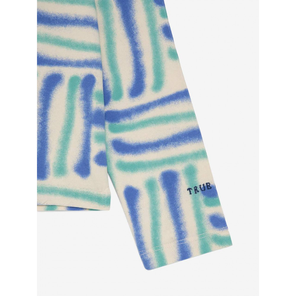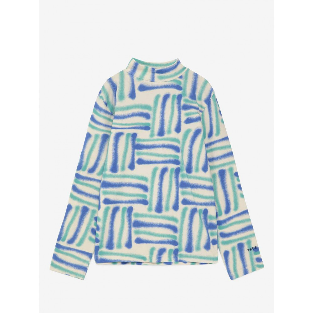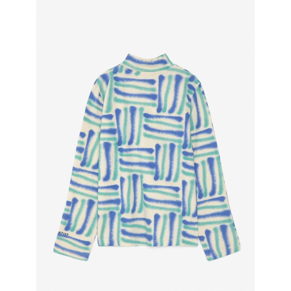 Aerosol Turtleneck T-shirt is made of 91% organic cotton, 9% elastane and it features an artistic allover hand painted print. This turtle neck t-shirt has a small embroidery of our bird logo on the sleeve in navy color. It has a straight fit. Made in Spain.