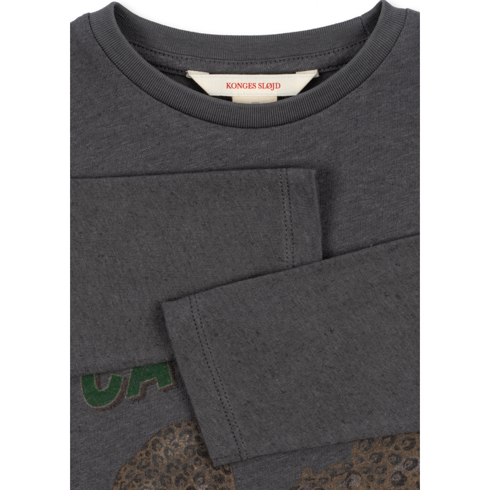 Linen blend tee with a soft texture. Classic design with long sleeves and crewneck. Snap button opening on shoulder for sizes up to 18 months for easy dressing.