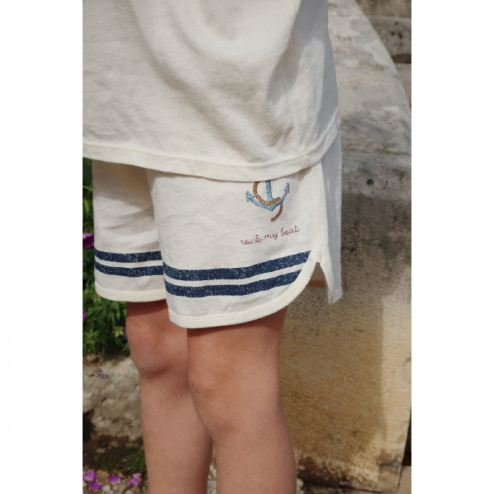 Two-piece cotton set with a matching tee and shorts. The tee features snap buttons on the left shoulder up to 18 months for easier dressing.