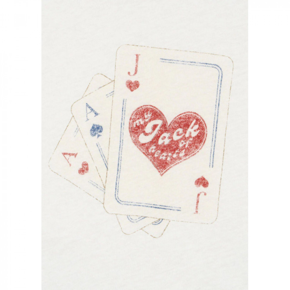 Game on. The Jack tee is made in a light and breathable linen blend with a soft texture. Designed with dropped shoulders, short sleeves, classic crewneck, and finished with a cute 'Jack of Hearts' print in front dedicated to Rosie's son.