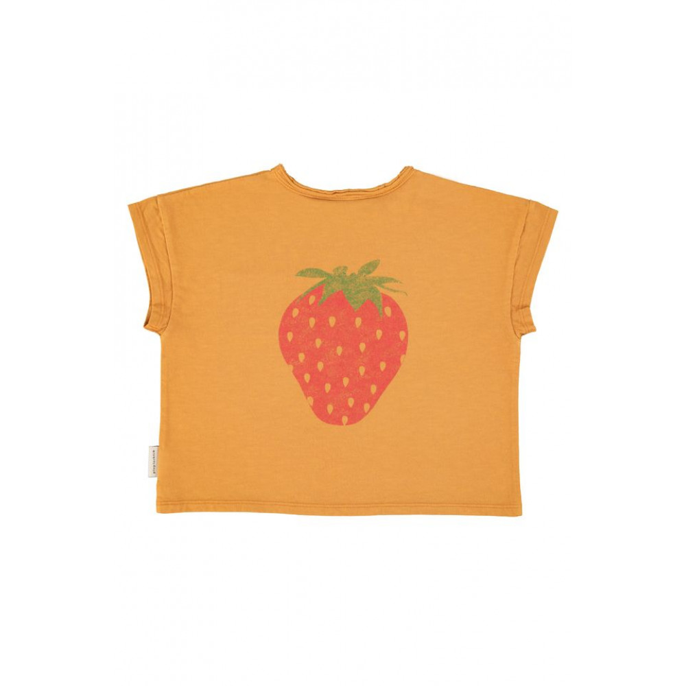 T´shirt in jersey flamé with chest pocket in raw edge. Detailed with print on the chest and back print. Wood buttons on shoulder for baby sizes. Wash cold (max 30ºC) . Do not bleach . Do not tumble dry . Iron cool (max 110ºC) . Do not dry clean