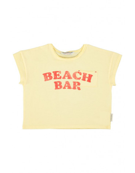 T´shirt in jersey flamé with chest pocket in raw edge. Detailed with front and back print. Wood buttons on shoulder for baby sizes. Wash cold (max 30ºC) . Do not bleach . Do not tumble dry . Iron cool (max 110ºC) . Do not dry clean