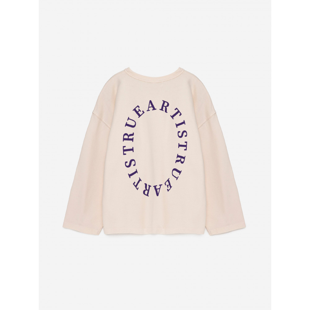 T-shirt nº02 in Ivory White is made in heavy knit 100% organic cotton. It has our bird logo embroidered on the chest and our seasonal True Artist print at the back. It is designed with round neck and long sleeves. It has a loose fit. Made in Portugal.