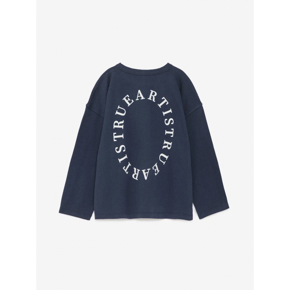 T-shirt nº02 in Navy Blue is made in heavy knit 100% organic cotton. It has our bird logo embroidered on the chest and our seasonal True Artist print at the back. It is designed with round neck and long sleeves. It has a loose fit. Made in Portugal.