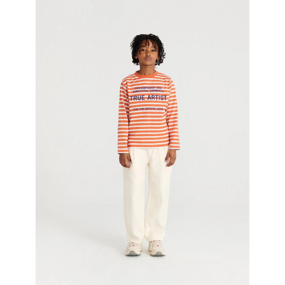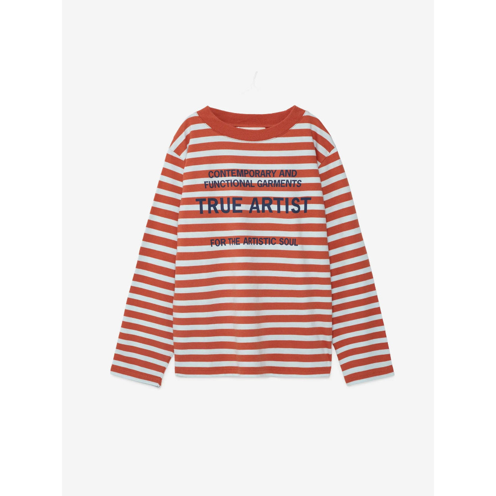 T-shirt nº16 in Blue Glow is made of 100% cotton. This yarn dyed striped t-shirt features our brand slogan printed on the front. It is designed with round neck, long sleeves and dropped shoulders; it has a relaxed fit. Made in Portugal.
