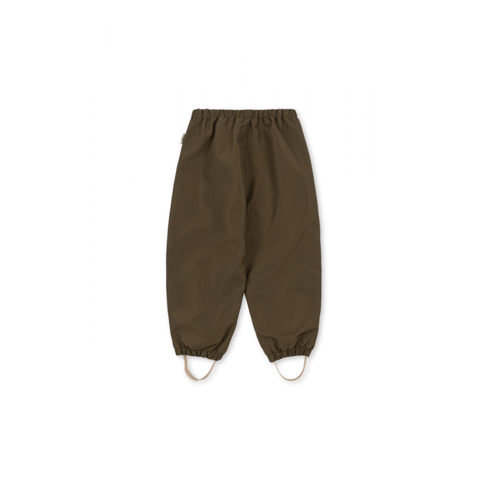 Functional shell pants in a lightweight performance fabric that offers premium weather protection and insulation. A practical everyday favorite that is easy to bring to daycare, kindergarten or school. Made with a comfortable elastic waist, soft fleece lining, elastic ankle cuffs, and rubber straps to fasten under footwear. Our shell pants are designed in a practical flexi size that can be adjusted to grow with the child, offering room to expand approximately 1.5 size. Technical specifications: Waterproof 10.000 mm Wind-resistant Breathability: 8000 g/m2/24 Taped seams