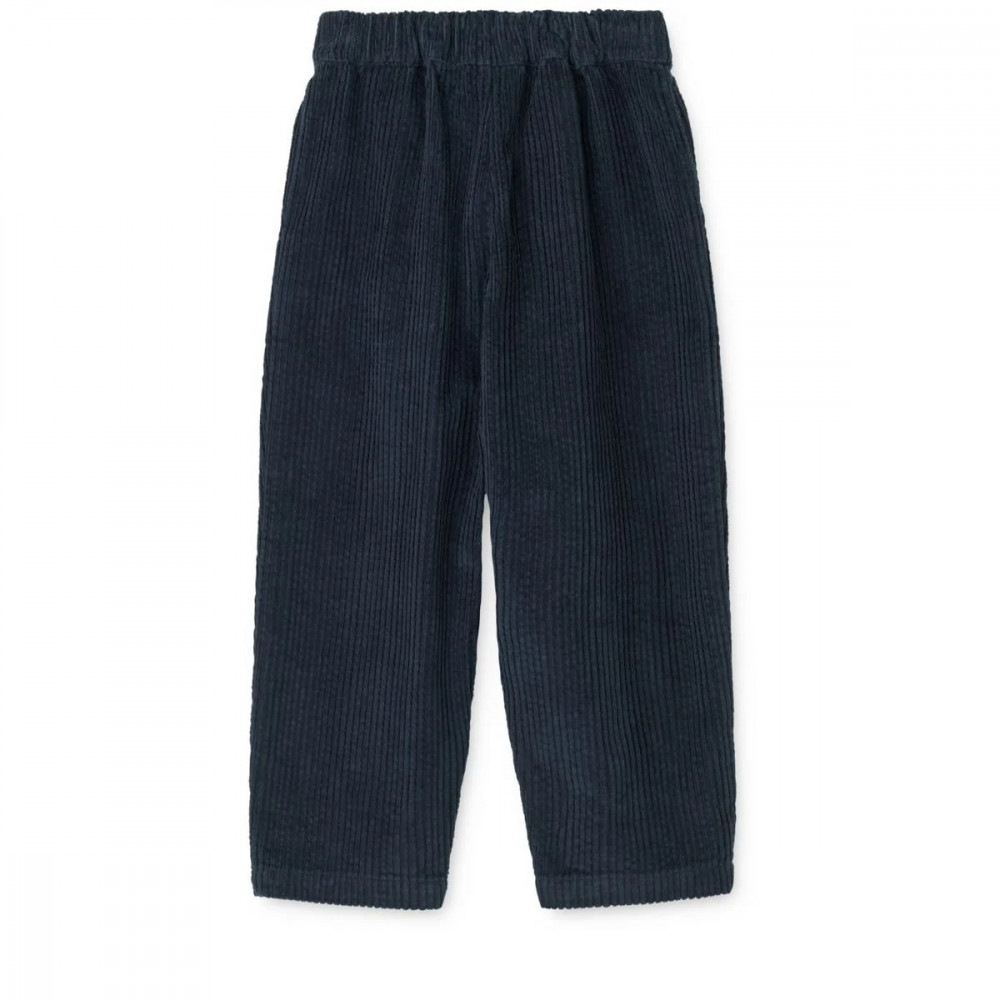 Chunky corduroy trousers featuring a relaxed curved fit, ensuring comfort and style. Crafted from richly textured corduroy, adding interest to your child's outfit for everyday wear and weekend outings. Cool and chunky corduroy trousers Crafted from soft and richly textured 100% GOTS-certified organic cotton Relaxed fit and curved legs with small pleats in the front Slanting side pockets Comfortable fit with an adjustable elastic inside waistband