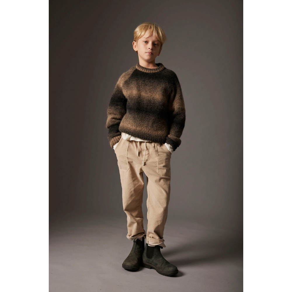 These fine corduroy pants for kids are crafted from 100% sustainable cotton, certified by the Better Cotton Initiative (BCI), ensuring softness and durability. Featuring an elastic adjustable waistband with a drawstring for a perfect fit, side patch pockets for convenience, and a back yoke for added structure. The stretchy fabric provides all-day comfort. Made from cotton certified by the Better Cotton Initiative. Fluffy with very narrow cords and elastane for extra flexibility. Smooth and comfortable touch. A sustainable choice for your boy’s wardrobe.