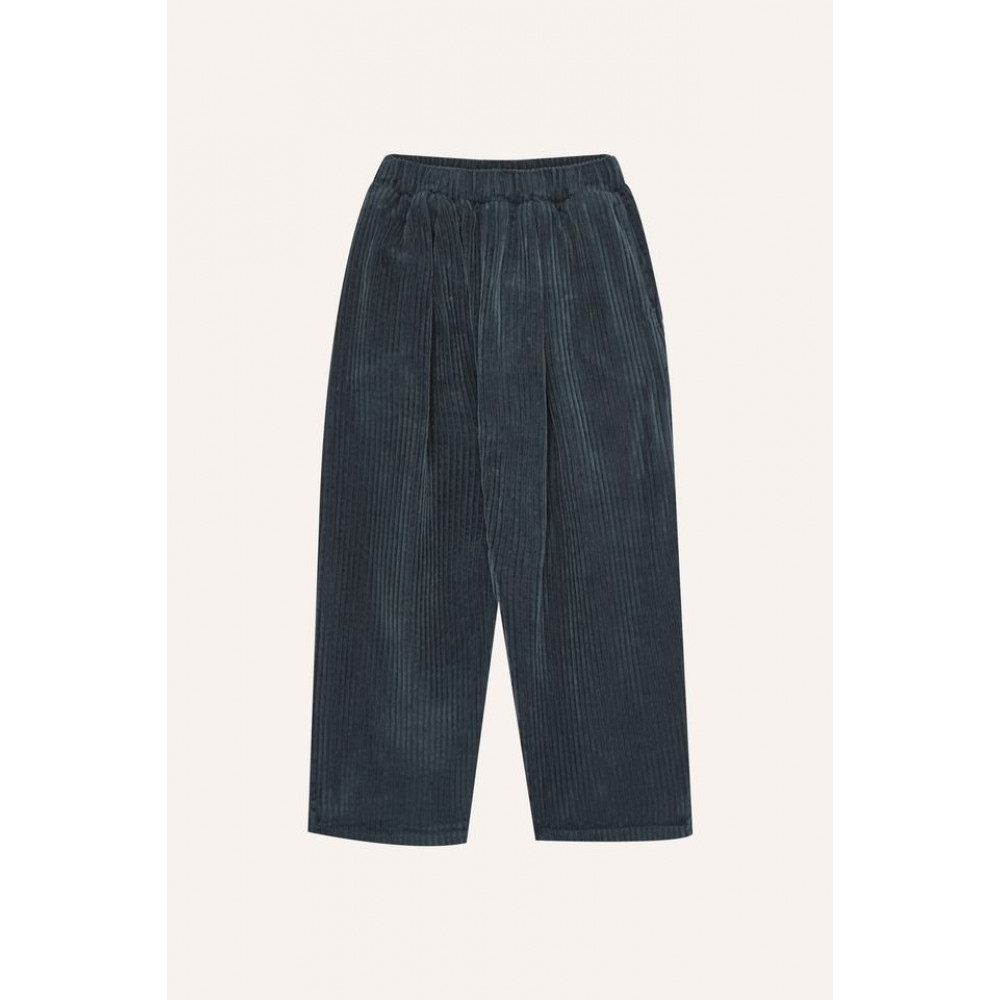 Comfy and cool corduroy trousers in washed grey color. With elastic band inside waistband for more comfort. They have The Campamento logo embroidered in the back. Loose fitting with elastic in waistband for more comfort. Made in Portugal.