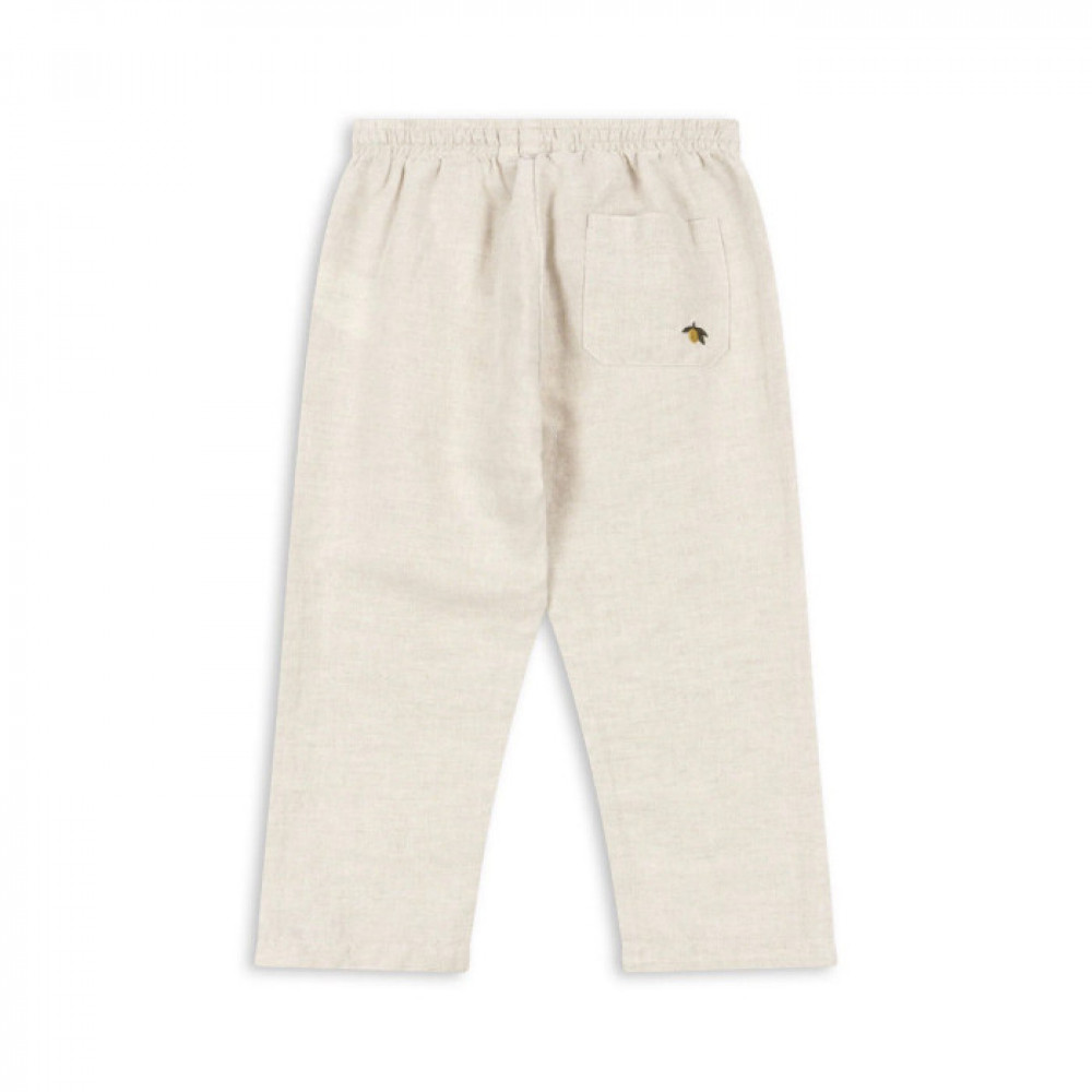 Pants crafted in a light linen and cotton blend with a soft texture.