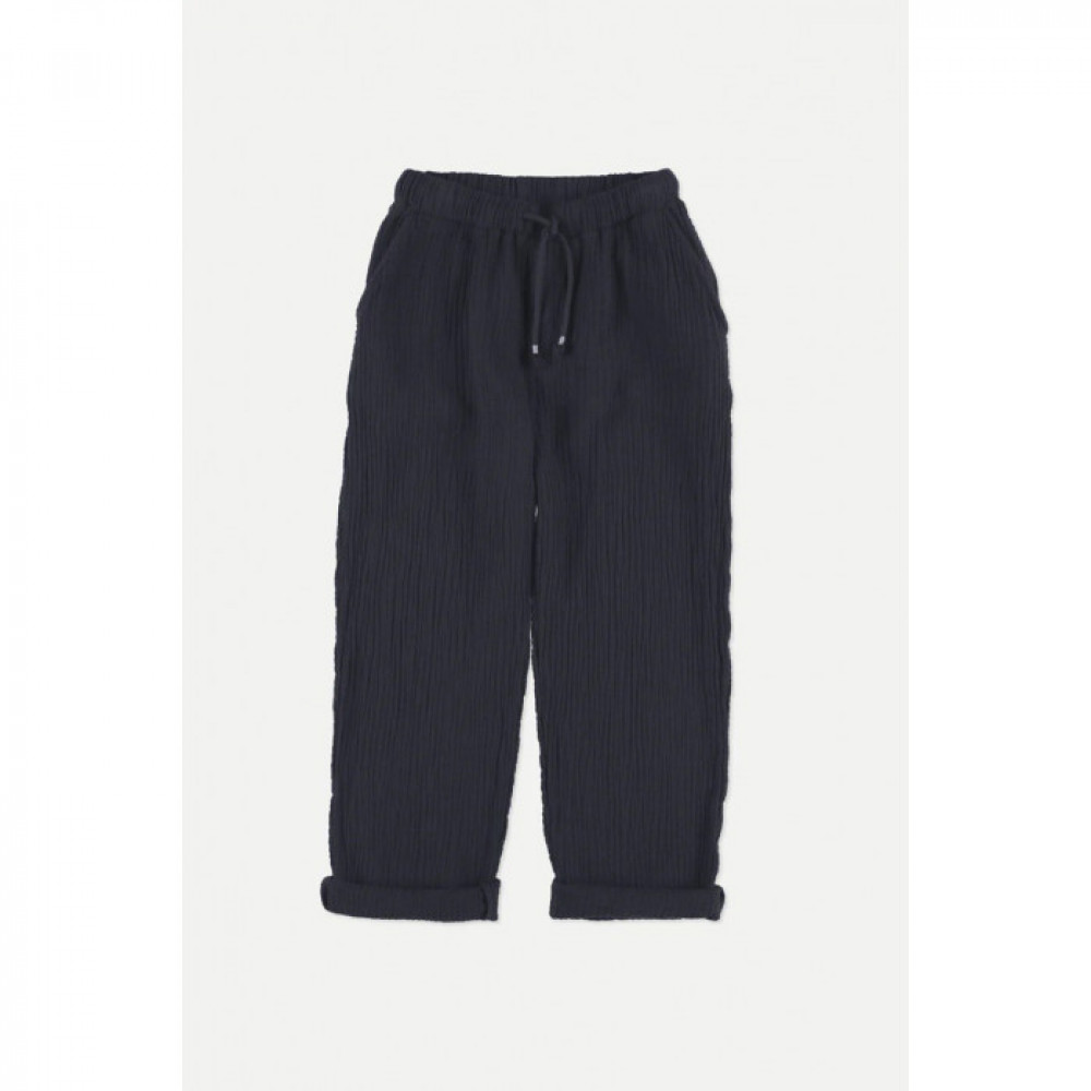 Pants in soft, gauzy cotton. Elastic waistband with a decorative drawstring. Side pockets and straight legs. Garment-dyed.