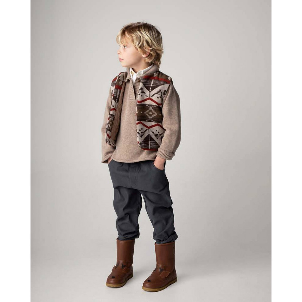 My smart little one! Stay comfortable, smart and adorable in the Olb trousers. Complete with a stretchy waistband and front pockets—an instant winter wardrobe essential.