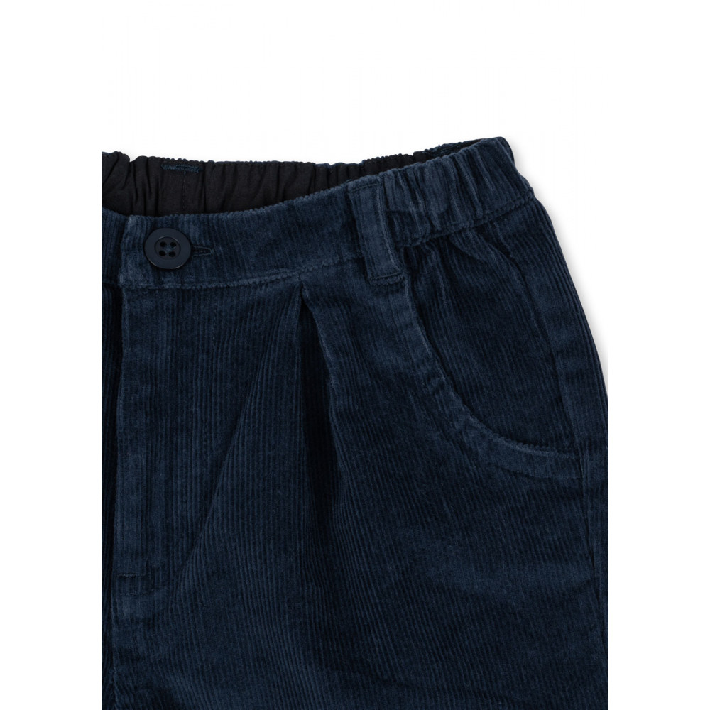 Soft corduroy pants with straight legs and a partially elastic waistband.
