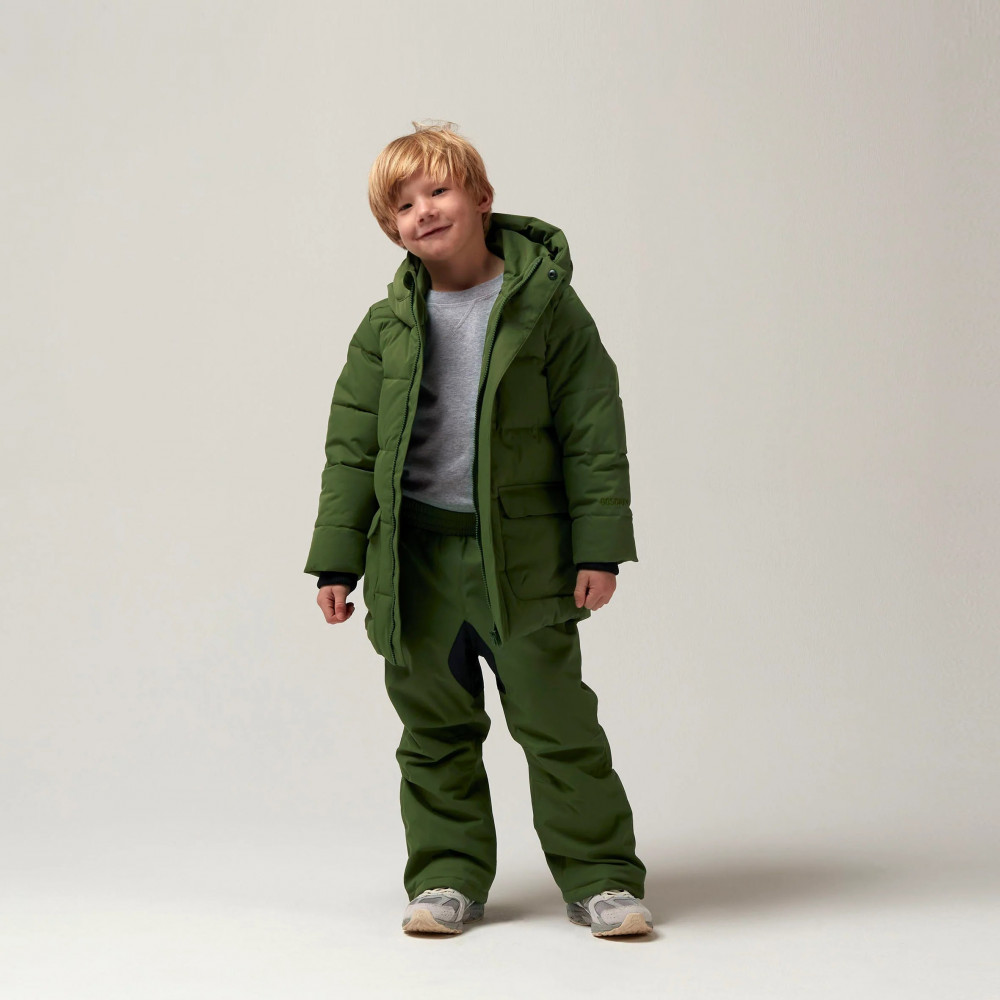 Stay on top with the TOP DOG. These padded waterproof trousers will keep those little legs dry and cozy, whether you’re out and about exploring in nature or running errands in the city. Combine our puffers TIGER EYE or DRAGON EYE for a full waterproof winter look. Waterproof rating: heavy rainfall 8000mm column pressure Taped seams High performance material Dense Micro Twill made out of recycled yarn DWR Bionic finish® Eco; this deep water-repellent finish is based on a fluorine free recipe Reflective safety strip in the small pocket at back of garment All our garments are BPA + AZO free and certified with all child safety regulations