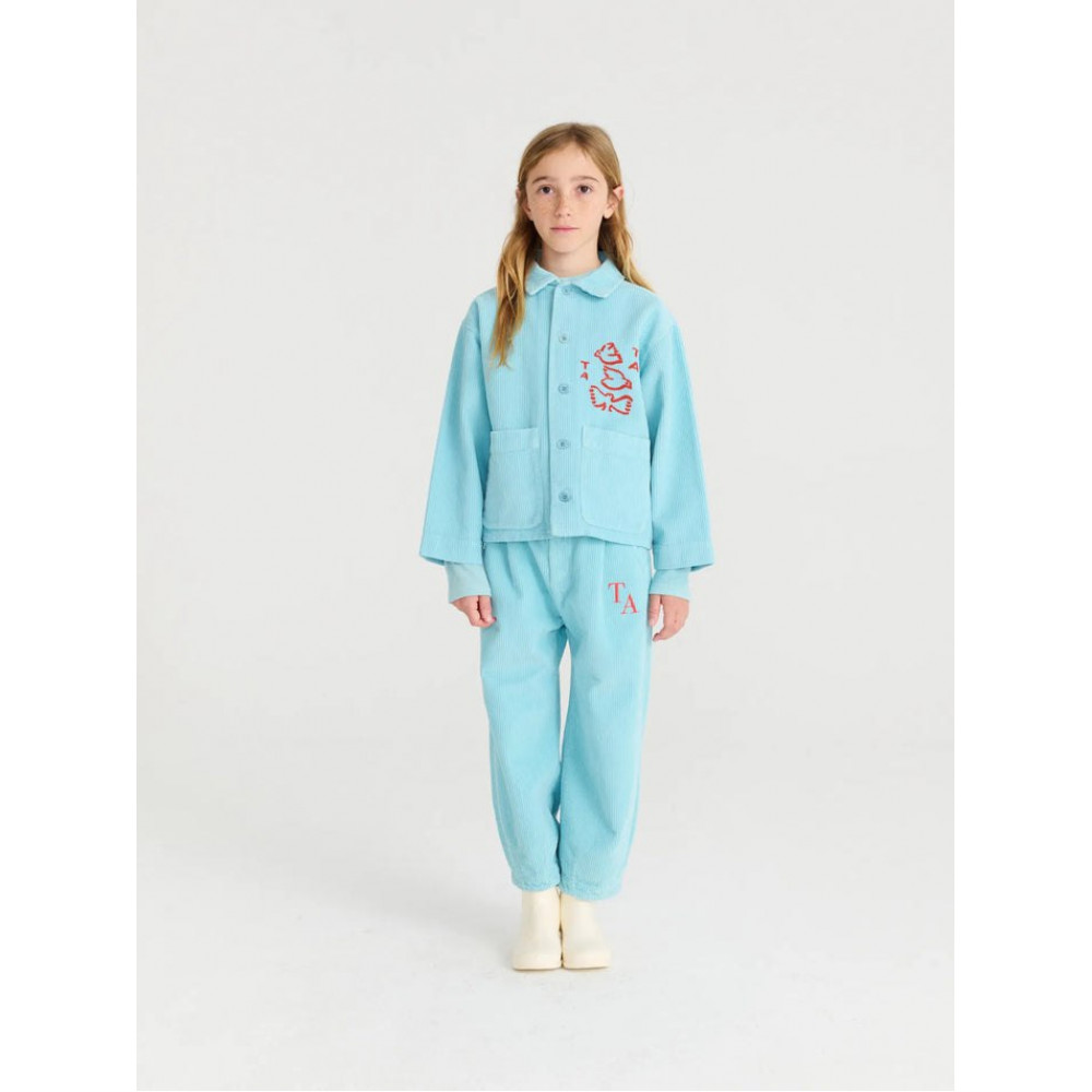 Trousers nº01 in Blue Glow are made of 100% cotton corduroy and have our TA logo embroidered on the front in contrast color. These slouchy chino pants are designed with adjustable waistband, slash pipped pockets and front zip and button fastening. They have a cocoon fit. Made in Spain.