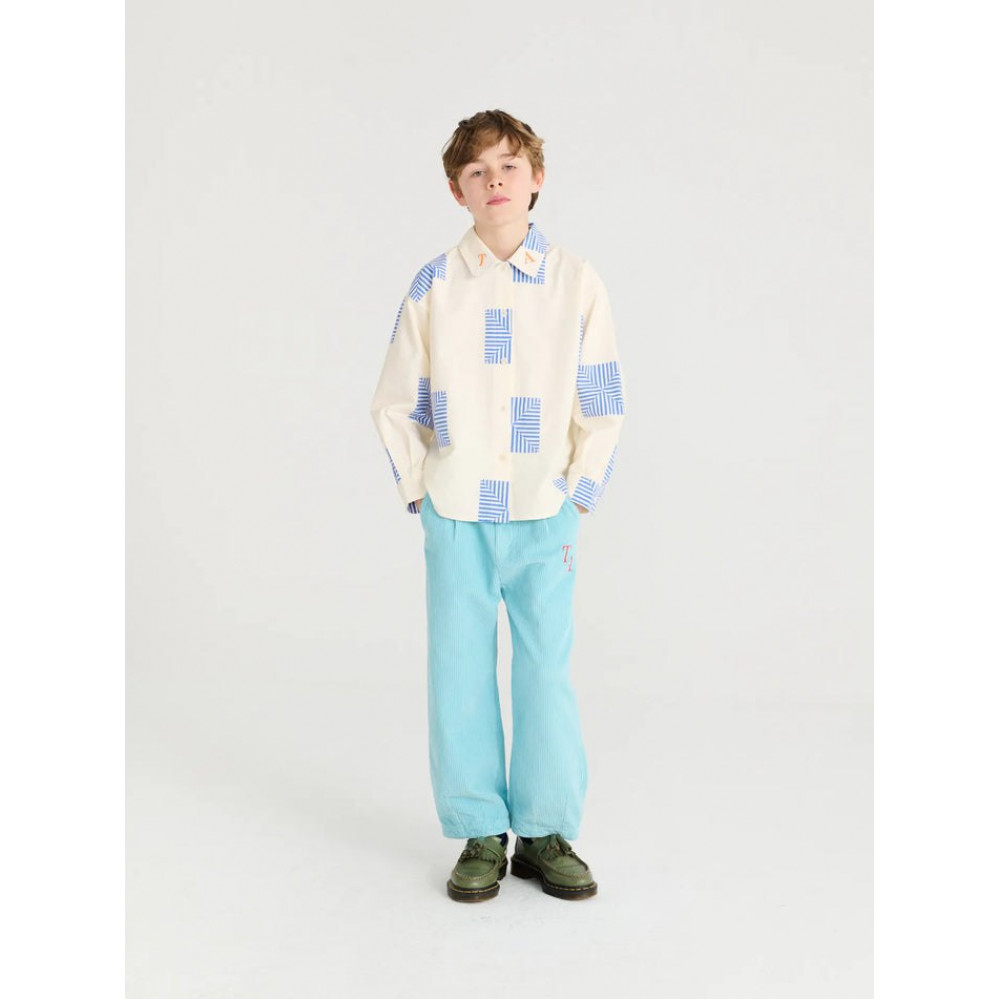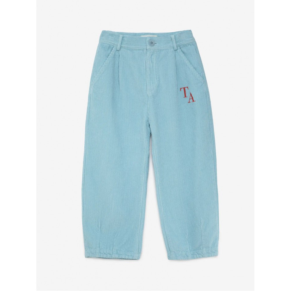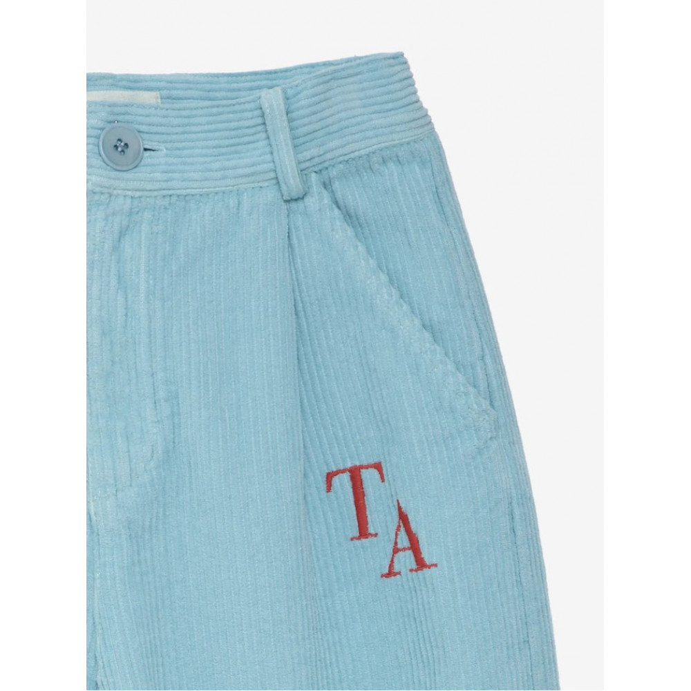 Trousers nº01 in Blue Glow are made of 100% cotton corduroy and have our TA logo embroidered on the front in contrast color. These slouchy chino pants are designed with adjustable waistband, slash pipped pockets and front zip and button fastening. They have a cocoon fit. Made in Spain.