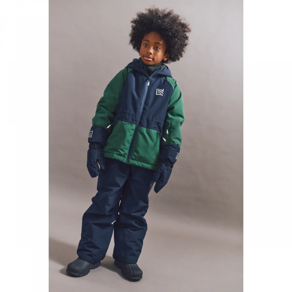 Get your children ready for cold and snowy adventures with the durable and waterproof WOLF snow pants. Padded with the less bulky THERMOLITE® EcoMade padding and adjustable waist, it allows little explorers to move around and play freely. Highly practical and waterproof snow pants with less bulky THERMOLITE® EcoMade padding Shell and lining are made from 100% recycled polyester Has an adjustable waist and reflective details Waterproof of 12.000 mm column water pressure Hook and loop straps and reinforced inseam at the lower leg Snow stopper inside the legs and detachable foot strap