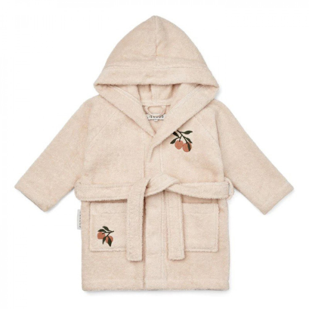 Subtle, yet playful, the organic Kenna bathrobe ensures warm comfort after a soothing bath. The attached tie belt and snap buttons keeps the robe gathered, while the decorative embroideries features playful motifs from the signature LIEWOOD prints. Matches with the Francisco washcloth. Hooded bathrobe with pockets in organic cotton terry For keeping warm and comfortable after bath time Matching, attached tie belt Hood for warmth and drying wet hair