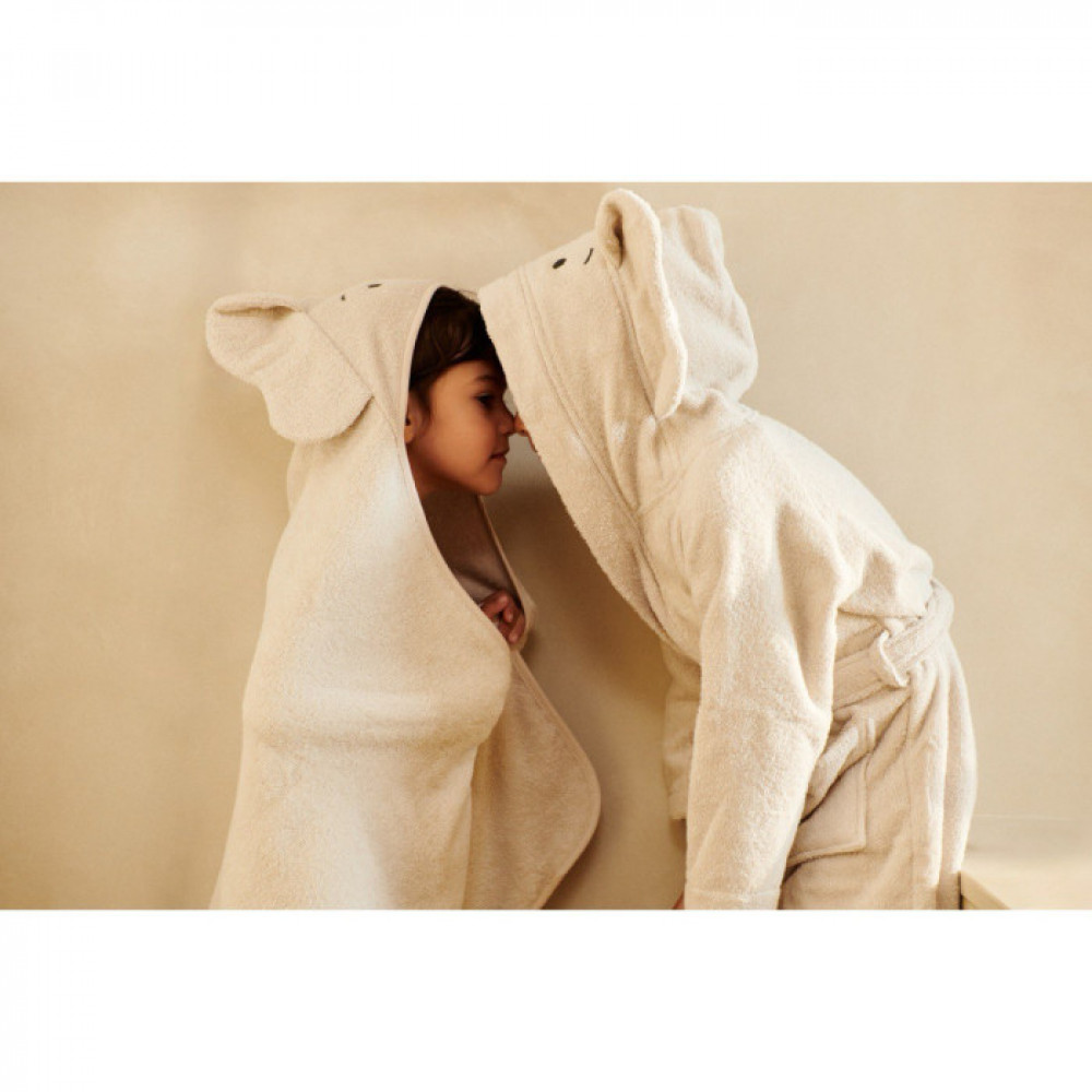 Children's bathrobe with ears Snuggly and ideal for after bath time With playful embroidery on the hood and ears Soft and dense terry cotton quality Highly absorbent Front pockets Tie belt