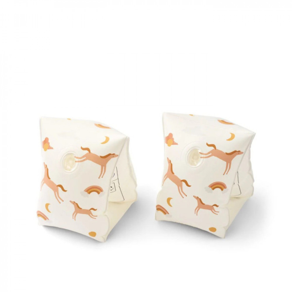 Make your child feel safe and confident in the water with the inflatable Shirley swim wings. Made from soft and scratch-free PVC and with two air chambers, the playful swimming aid makes it easier for new swimmers to enjoy free movement in the water. Help your children build confidence in the water Inflatable with two air chambers Scratch-free and comfortable to wear Please note that they are available in two sizes Children must be supervised when wearing the swim wings CE and CA-certified Dimensions: Height 24,5 cm & width 14 cm