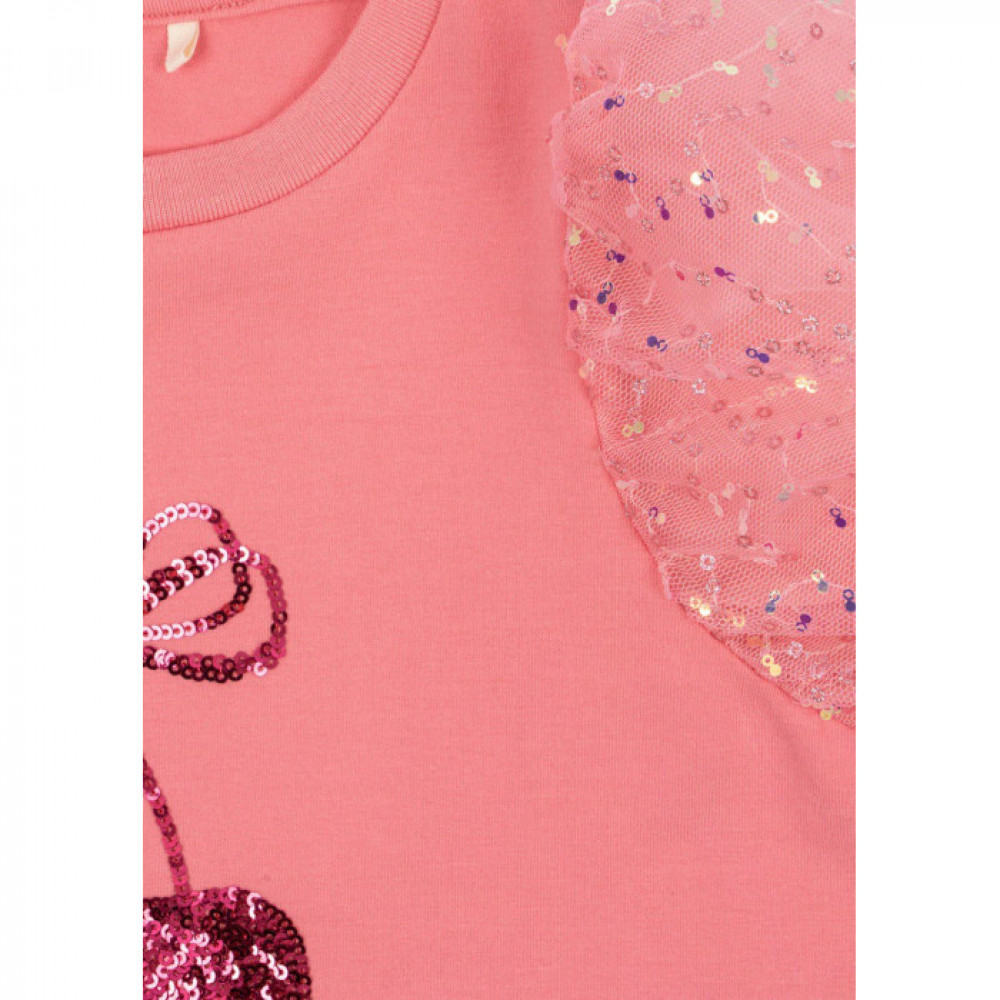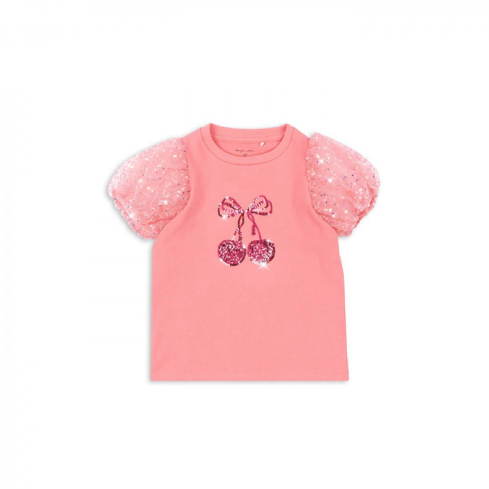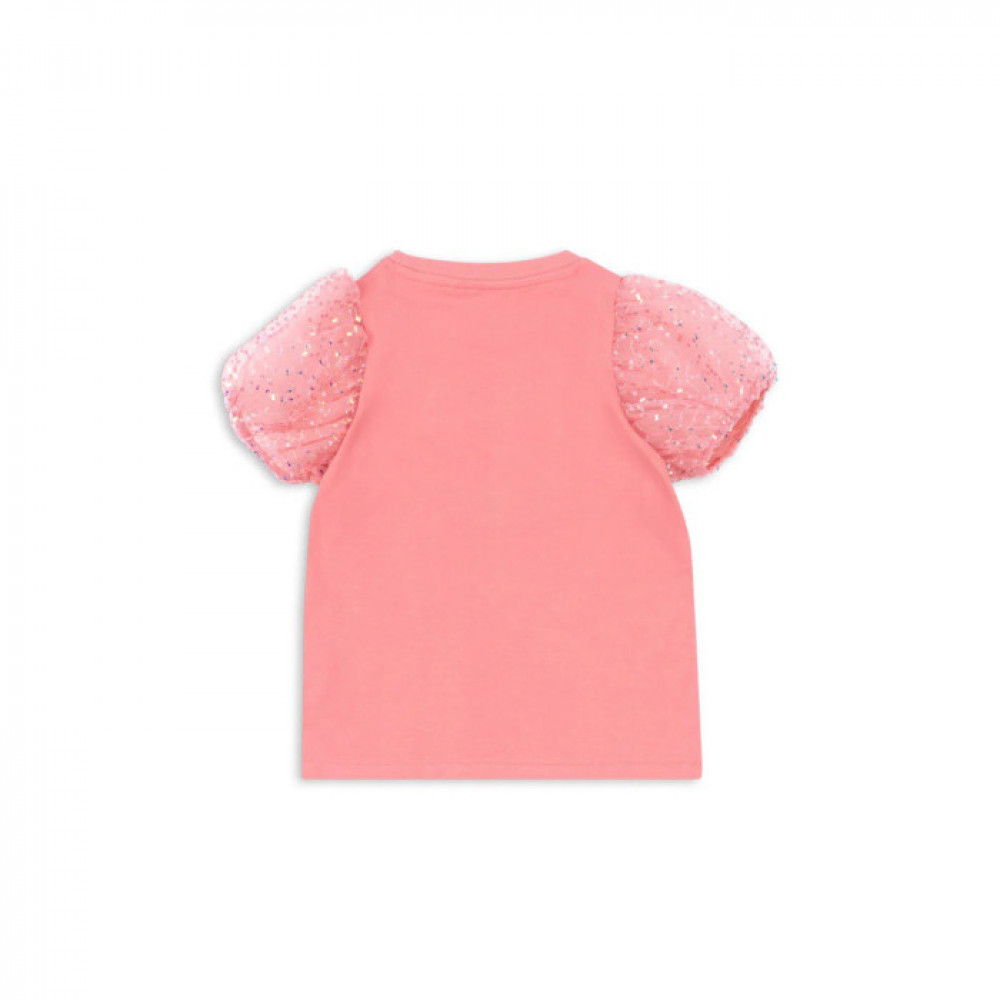 Ballerina cotton tee designed with tulle puff sleeves adorned with glitter and sequins.
