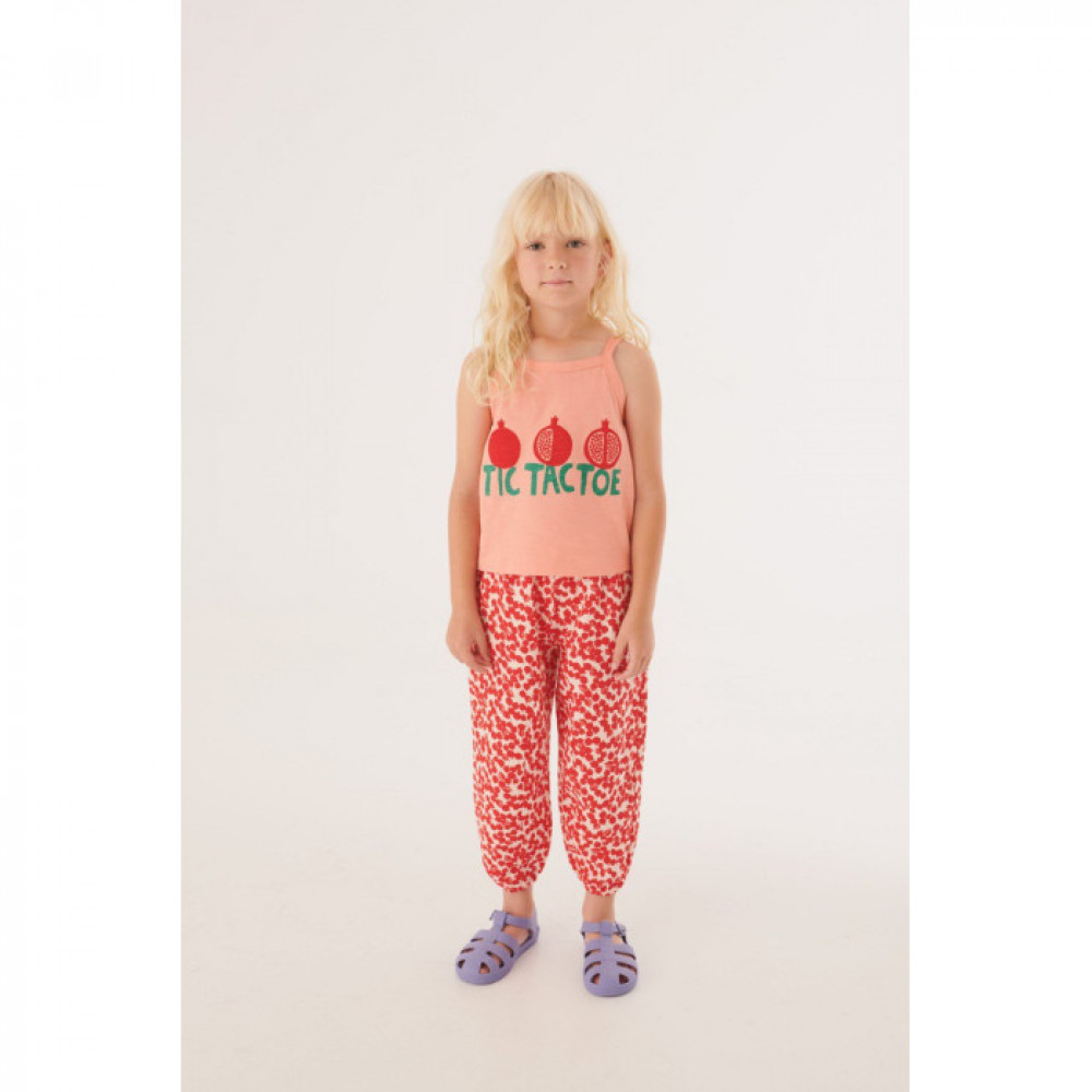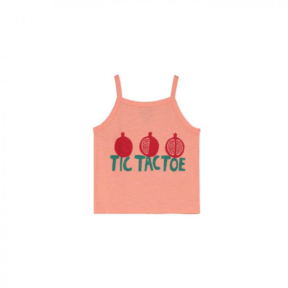 100 % organic cotton slub jersey top in sunset color. Spaghetti straps. Front “Tic Tac Toe” placement print. Regular fit.