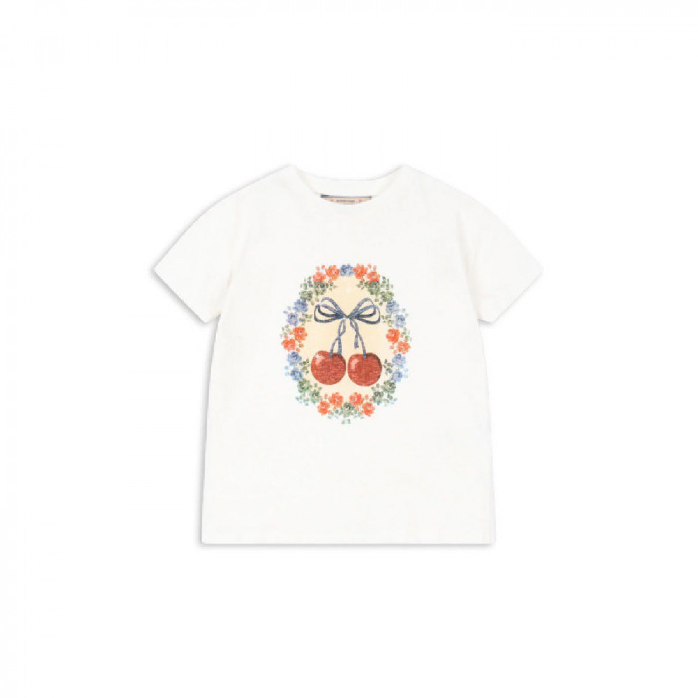 Linen blend tee with a soft texture. Classic design with short sleeves and crewneck. Snap button opening on shoulder for sizes up to 18 months for easy dressing.