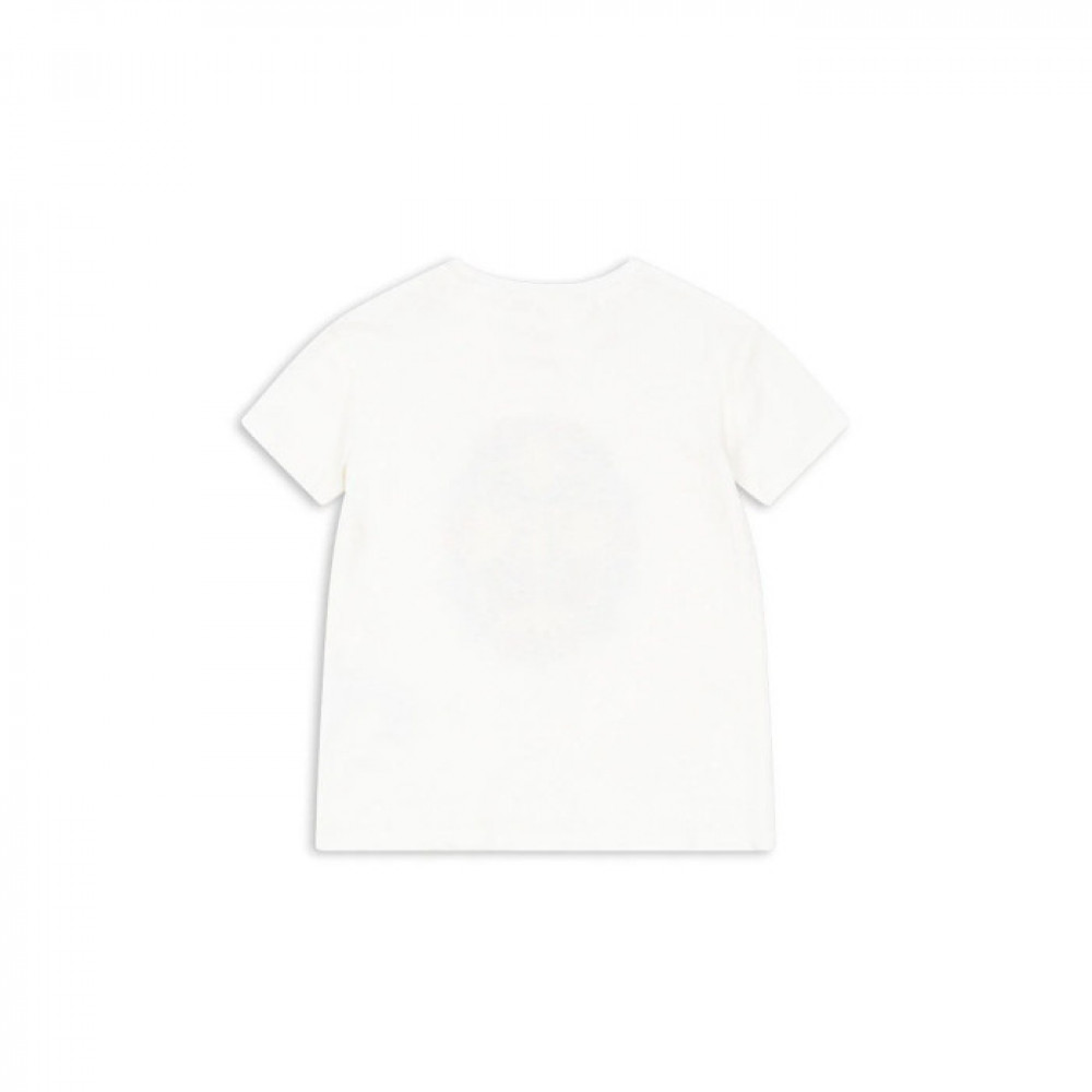 Linen blend tee with a soft texture. Classic design with short sleeves and crewneck. Snap button opening on shoulder for sizes up to 18 months for easy dressing.