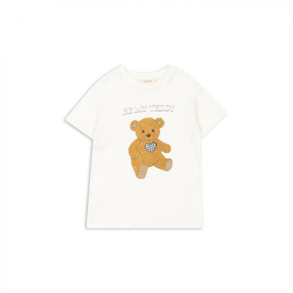 Linen blend tee with a soft texture. Classic design with short sleeves and crewneck. Snap button opening on shoulder for sizes up to 18 months for easy dressing.