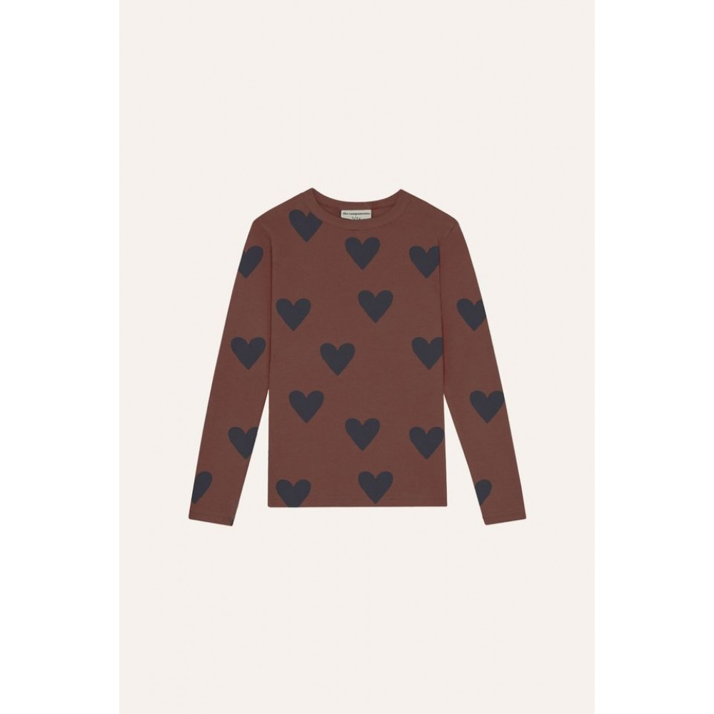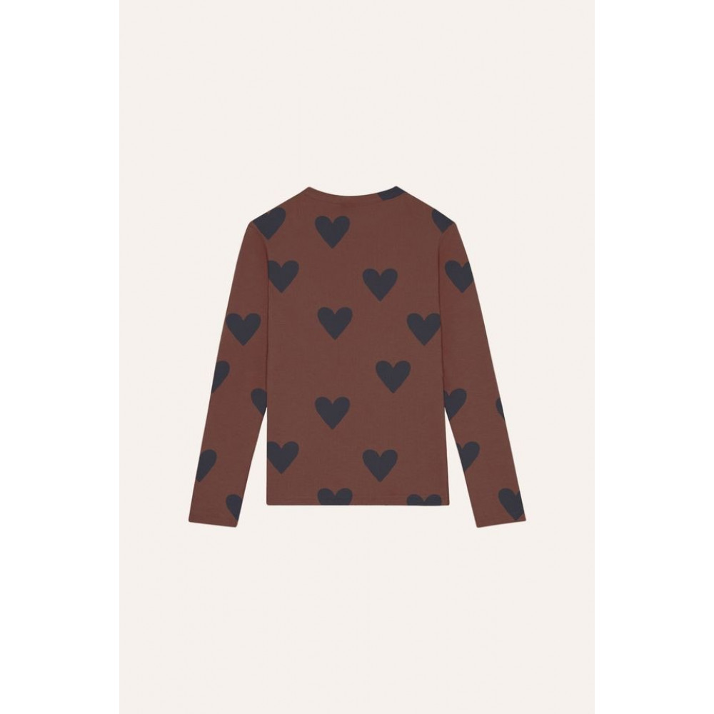 T-shirt made in a soft rib quality with a print of black hearts all over it. Rounded neck and long sleeves perfect for wearing all winter. You can make a total look with the “Hearts Brown Leggings” or combine it with any kind of garment, you choose! Tshirt with long sleeves and fitted to the body. Rounded neck with rib quality for added comfort. Made in Portugal.